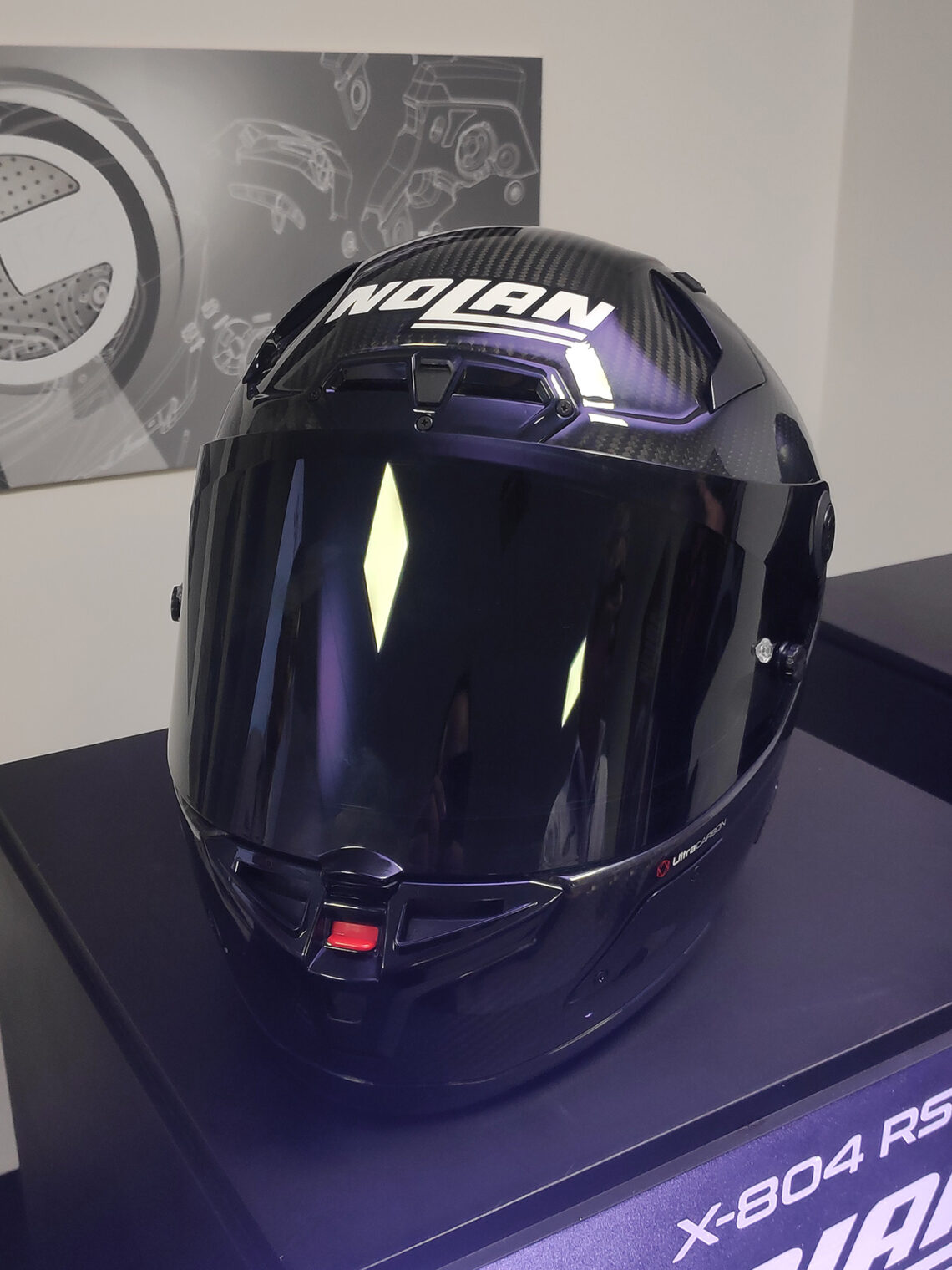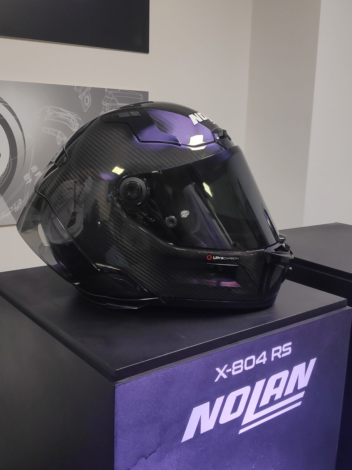 El final de la visita se cerró con la presentación de sus nuevos cascos referencia para el próximo año 2024, siendo el Nolan X-804 RS Ultra Carbon el centro de todas las miradas. Además del X-804, Nolan también mostró los nuevos N120-1 (primer flip-back), N60-6 Sport (casco deportivo para carretera) y N100-6 como oferta modular para los usuarios que busquen mayor confort y polivalencia.