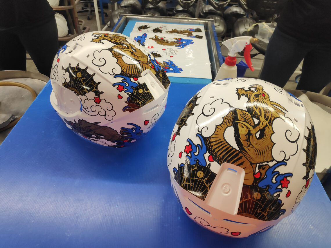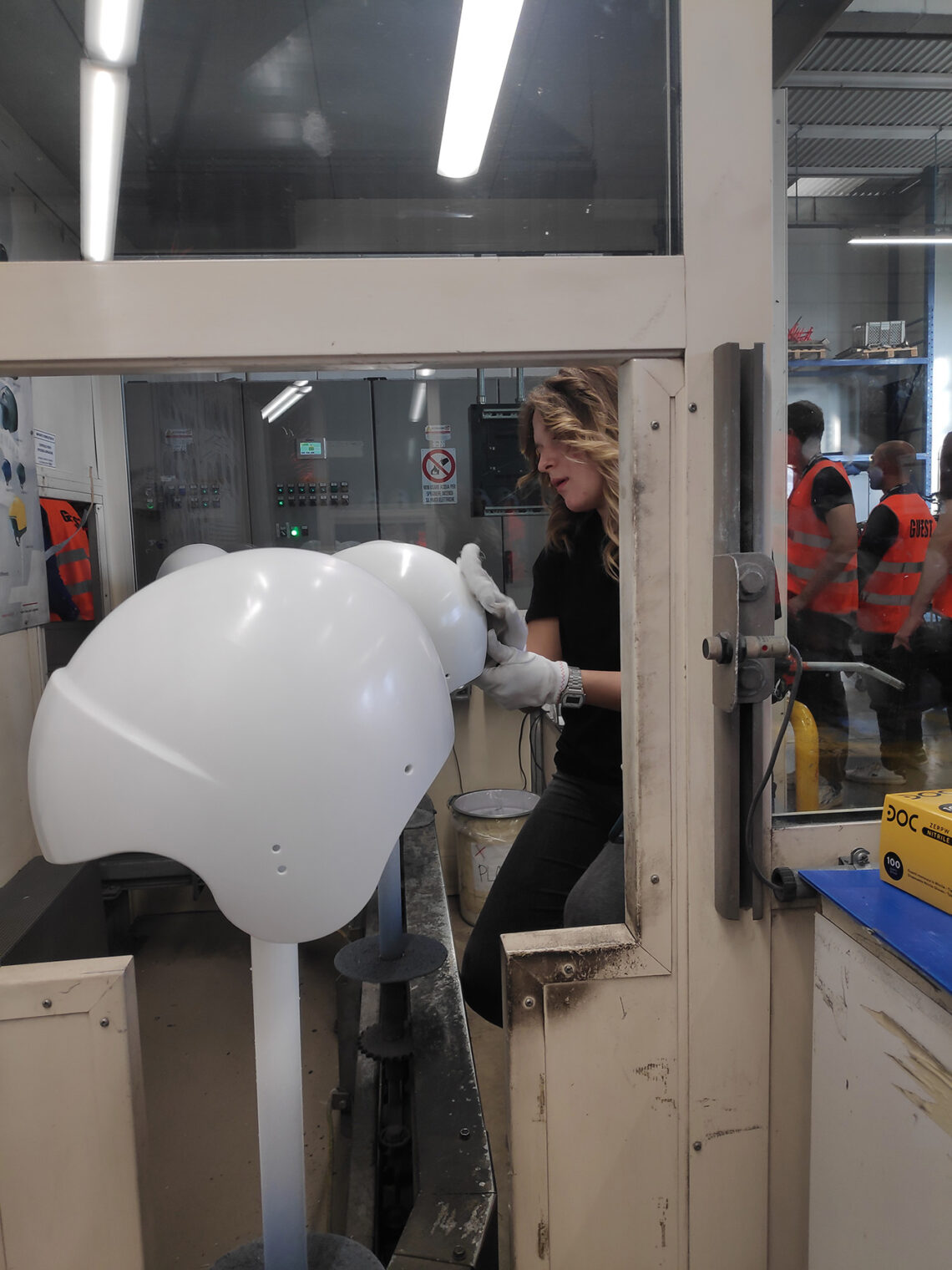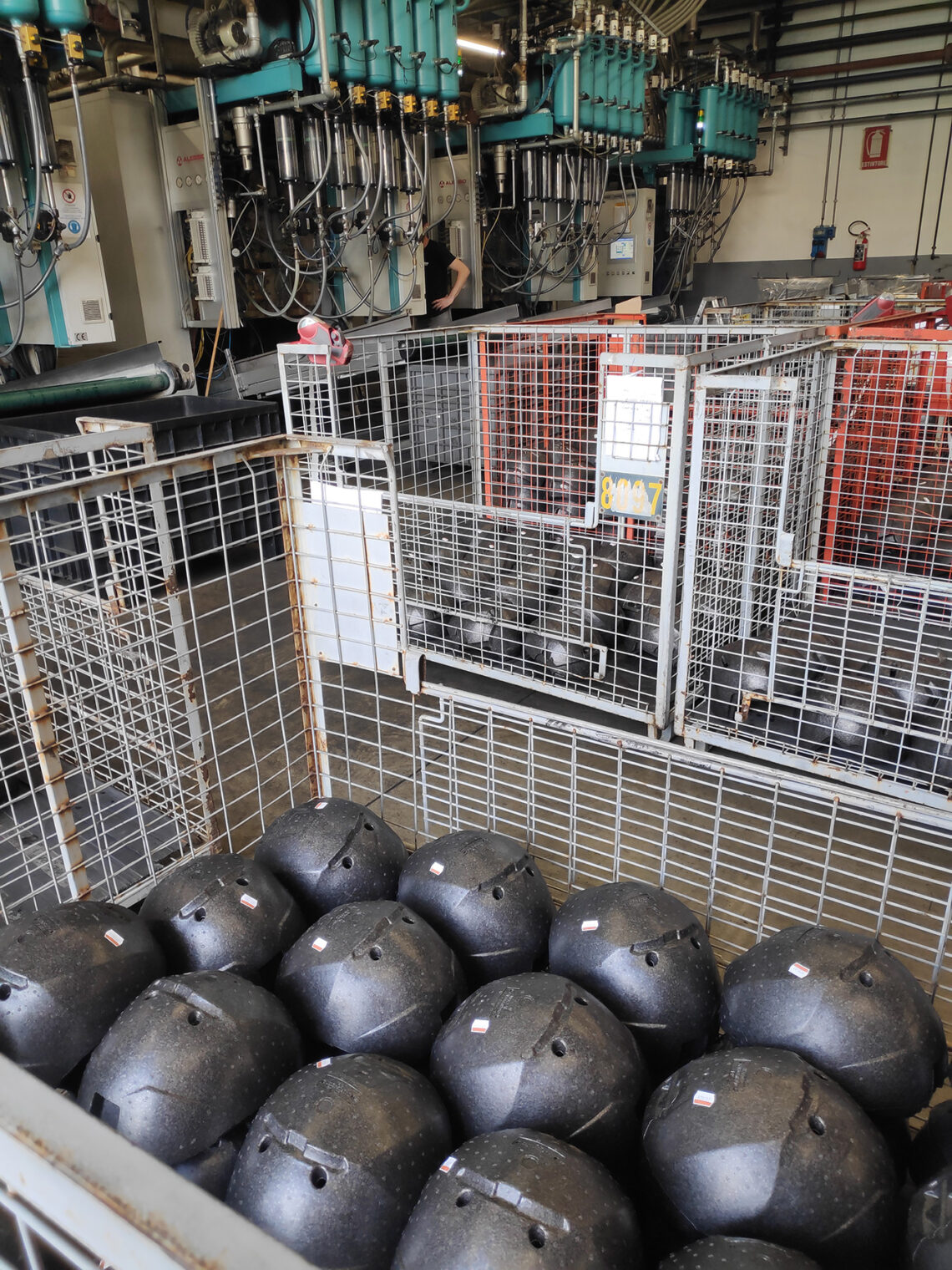 También merece destacar la sal de hornos donde trabajan el policarbonato, con diferentes medidas de densidad, grosor, y tamaño, dependiendo de la homologación de cada país a donde está destinado cada casco.