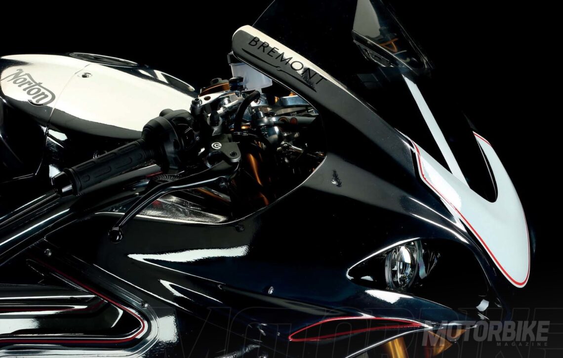 De su interior, podemos pensar que se está trabajando sobre el actual motor V4 montado en la superbike y en la hermana Norton V4CR. con una cilindrada de 1200 cc que desarrolla 185 cv de potencia y 125 Nm de par, que se monta sobre un chasis de aluminio y piezas de suspensiones Öhlins y frenos Brembo.