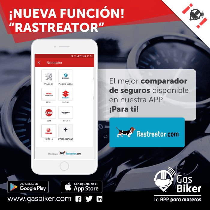 El famoso comparador de seguros Rastreator estará también en la app con su comparador y ofreciendo ventajas en los precios a los usuarios de la aplicación Gas Biker.