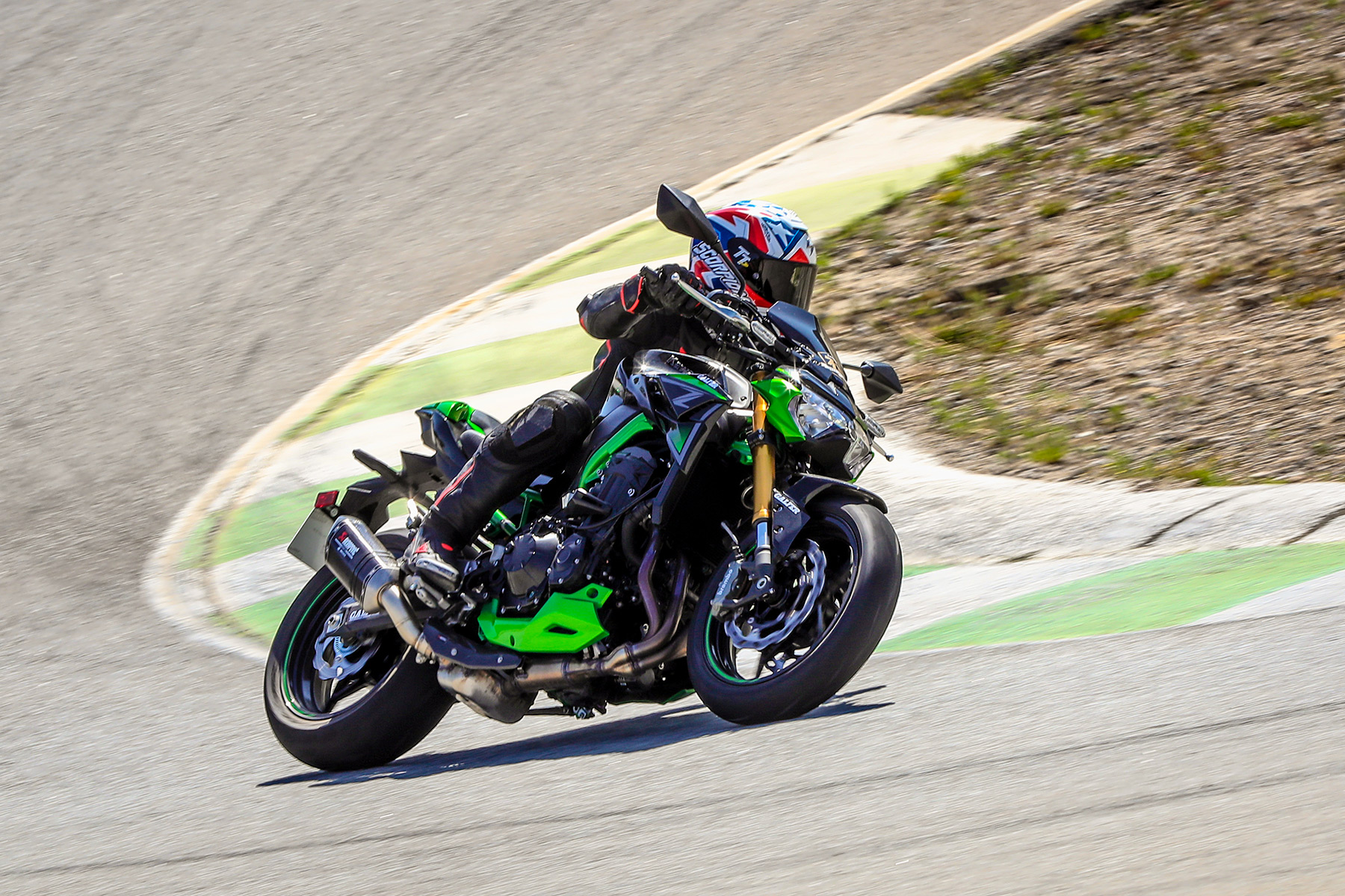 Z900 fuera, Yamaha R1 dentro. En este punto busqué calentar el conjunto lo máximo que pude buscando incluso frenadas abusadas de manera intencionada. En qué momento... Una vez empiezan a coger temperatura, descubres otra pastilla, no excelente o superior a lo que había ofrecido hasta ahora, sino mucho mejor de las expectativas creadas y con una potencia de frenado exactamente igual (no pude descubrir si más) que unas pastillas específicas de competición, pero además manteniendo la más que comentada progresividad. Hablamos de temperaturas propias de frenadas agresivas desde velocidades superiores a 200 km/h, donde los discos se tornan azul oscuro... o algo más. A partir de ahí, el sistema de freno empieza a adquirir un sonido diferente, un tacto un poco más terso (maneta) pero un rendimiento multiplicado. La frenada no se vuelve delicada, pero si muy poderosa. Se encuentra en ese complejo umbral de efectividad/accesibilidad (sobre todo para aquellos que no tienen tanta sensibilidad en la mano).