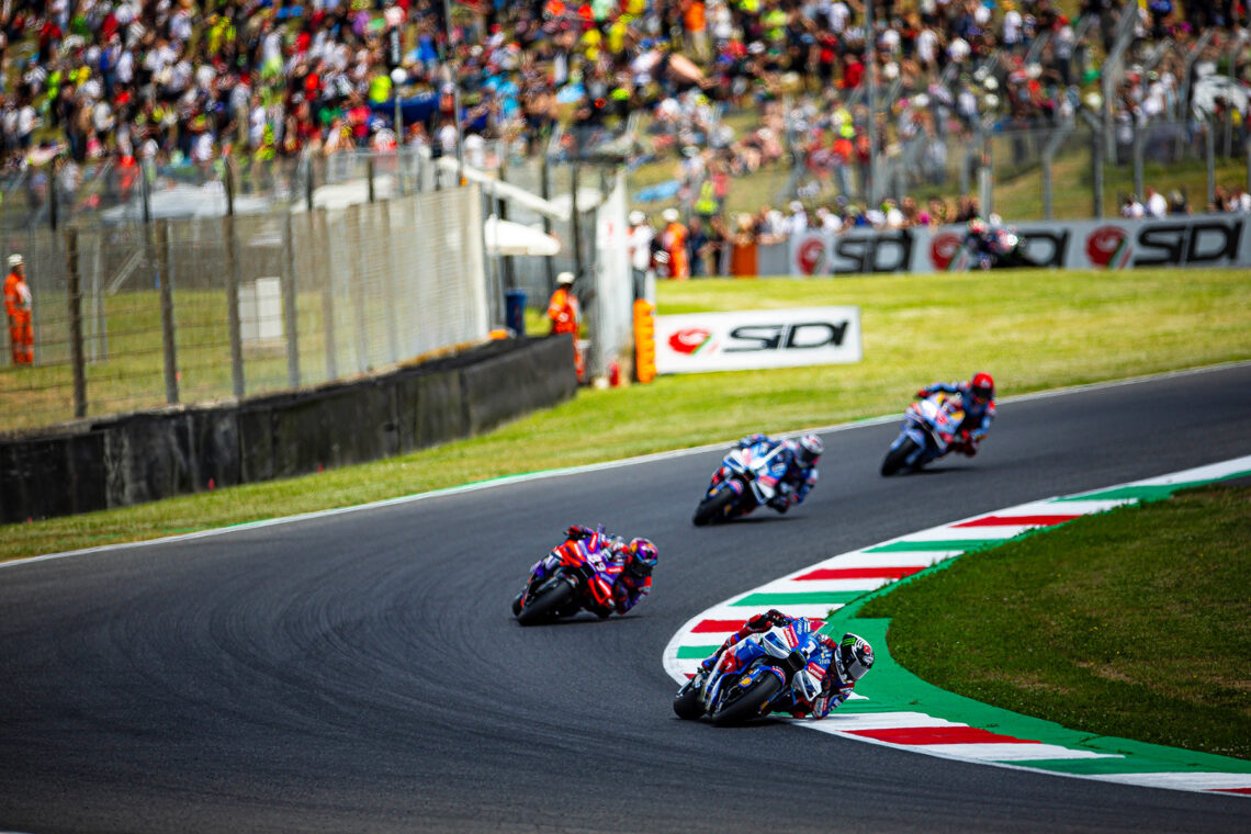 El delirio a las gradas de Mugello llegó en la última curva, con un inesperado y preciso adelantamiento de Enea Bastianini a Jorge Martín para rematar el doblete italiano y del Ducati Lenovo, que en el día de la Fiesta de la República Italiana se vistió de azzurro en homenaje a las selecciones nacionales de Italia.