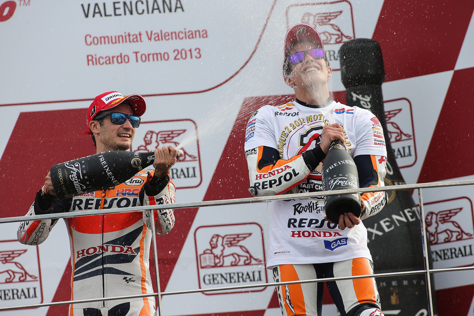 Casey Stoner y Dani Pedrosa fueron a la par durante muchos momentos de su carrera deportiva. Con el australiano luchó en 125cc, en 250cc y ambos llegaron el mismo año (2006) a MotoGP, categoría en la que Stoner destapó el tarro de las esencias con dos títulos mundiales. Uno de ellos fue con Pedrosa como compañero.