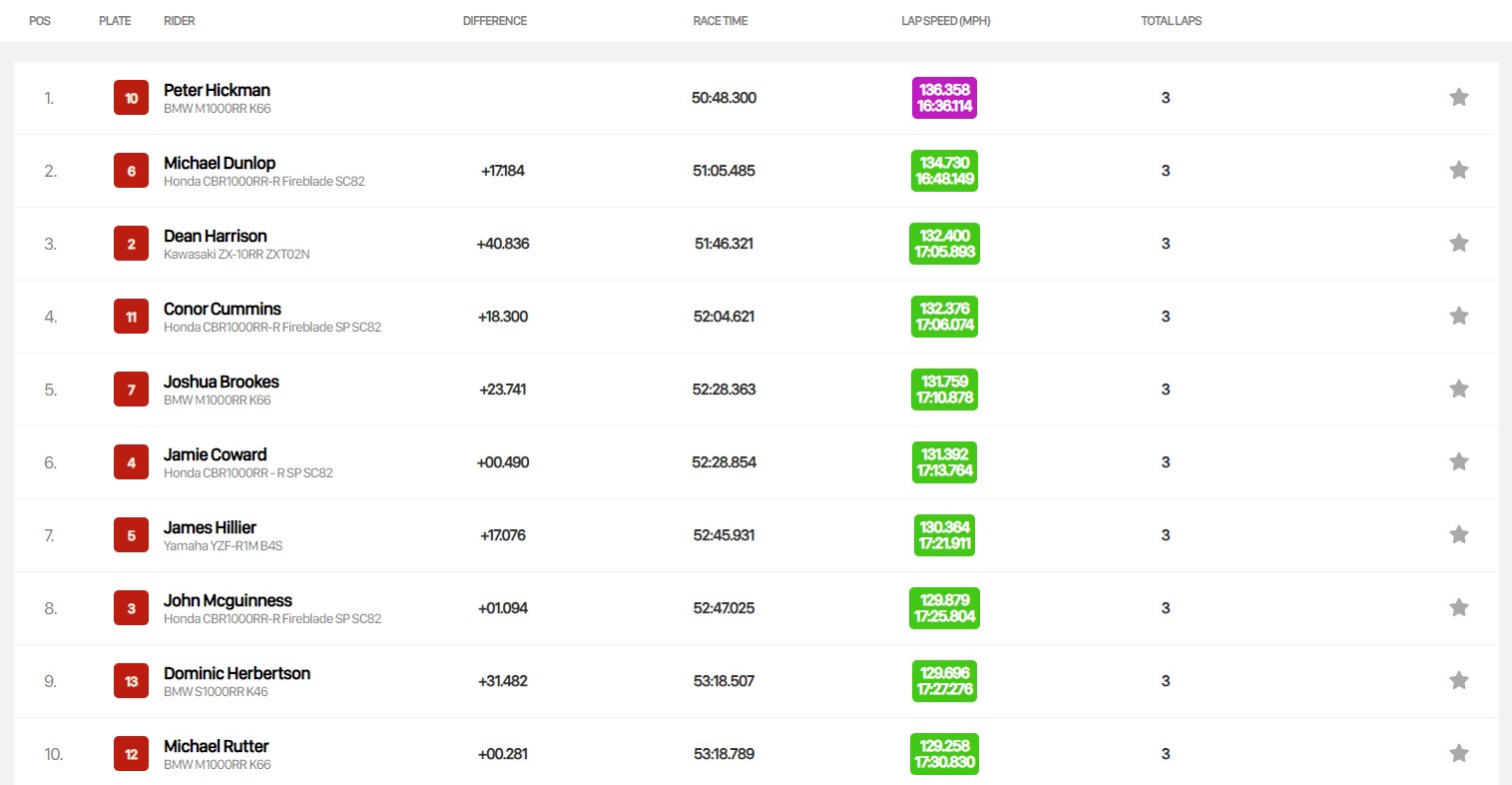 'Hicky' amplía su leyenda dentro de las Road Races con una victoria más en el TT de la Isla de Man, donde ya tiene 11 tras el recital que ha ofrecido este viernes en la segunda carrera de Superstock. A los mandos de la BMW M 1000 RR, Hickman ha dominado de principio a fin en esta carrera, abriendo una brecha cada vez más amplia con Michael Dunlop en las dos primeras vueltas, hasta sacarse la chistera la mejor vuelta de la historia del IOMTT en la tercera y última de carrera.