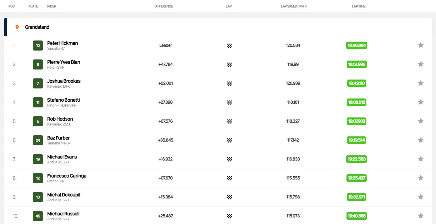 Esta ristra de abandonos le puso las cosas en bandeja a Peter Hickman, que iba encaminado a darle el primer gran triunfo a su Yamaha R7. El británico, que justo antes había deslumbrado con su victoria de récord en Superstock, se apuntaba su 12º triunfo en el TT de la Isla de Man, el tercero en esta edición. Pierre Yves Blan y Josh Brookes completaron el podio.