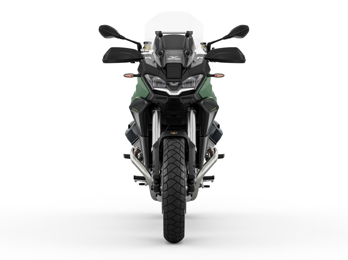 La Stelvio, la gran trail de la marca, suma dos nuevos esquemas (Grigio Climbing y Verde Hiking) que refuerzan su carácter off-road y su conexión con los paisajes que inspiran a Moto Guzzi desde hace más de un siglo.
