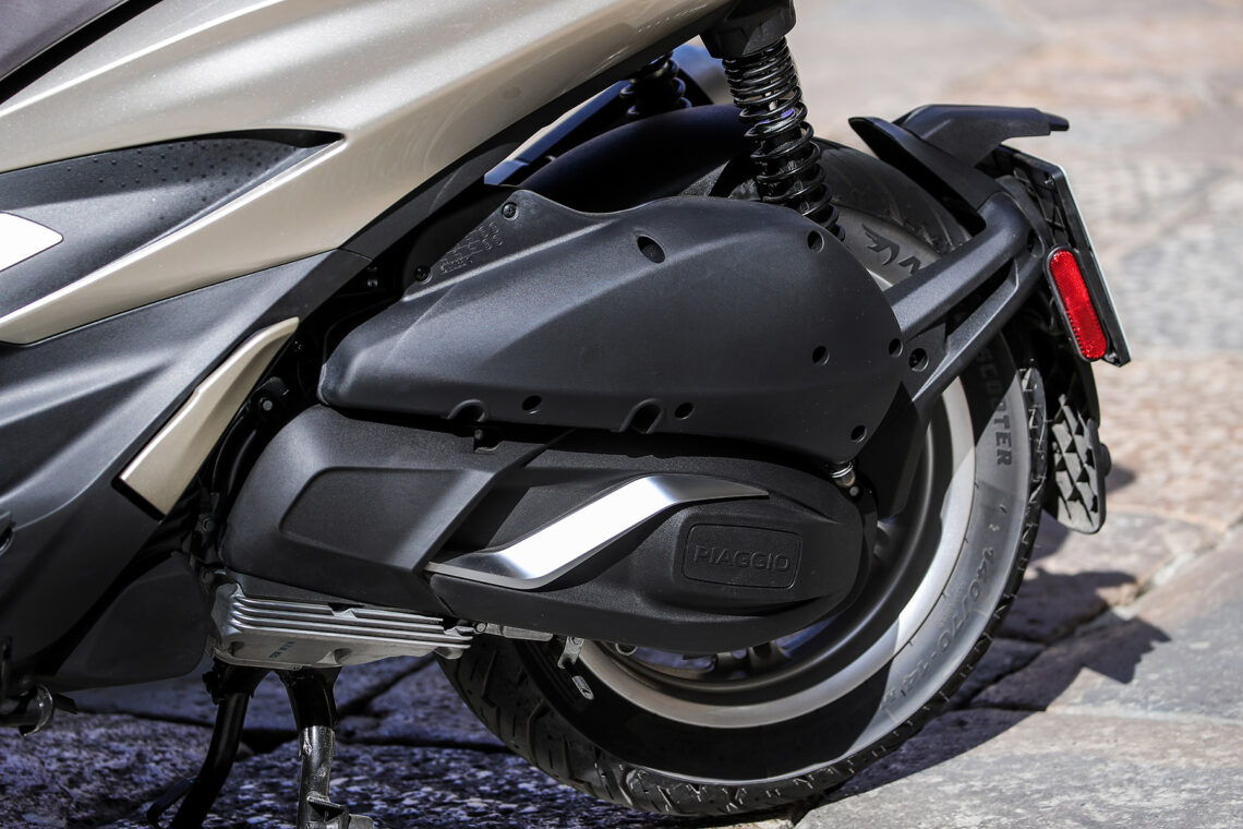 El Piaggio Beverly 300 HPE 2021 llega con un motor actualizado, de 4 válvulas, con un 23% más de potencia (25,8 cv) y un 16% más de par motor (26 nm) gracias a la tecnología HPE. Estas siglas responden a High Performance Engine y ofrecen un despliegue técnico interno que no solo aumentan las prestaciones del vehículo, sino que le hacen más eficiente (Euro5 apto).