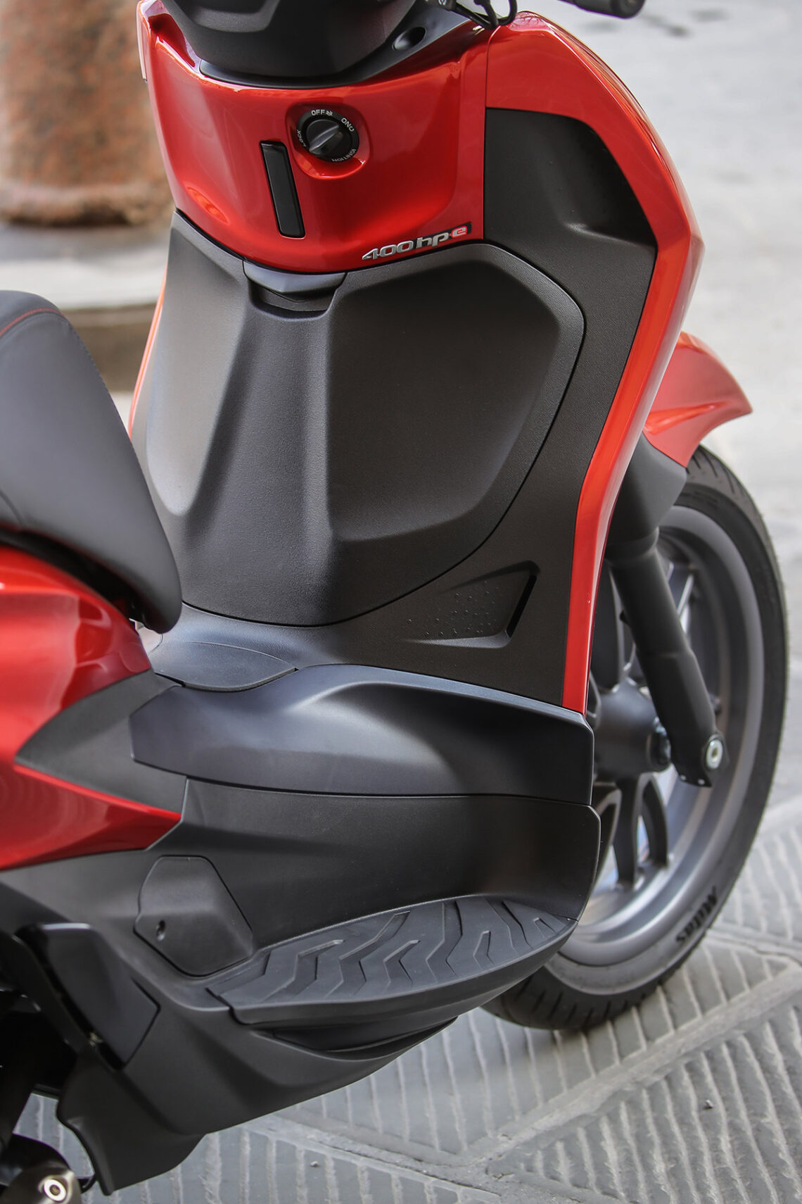 En todo lo demás, encontramos un scooter muy similar. Quizá deba reconocer algo más de estabilidad a alta velocidad en curvas rápidas, pero también hay que reconocer que el 400 lleva ahora mayor medida de neumático (ancho). También está el hecho de la pantalla frontal, que favorece en la protección aerodinámica, aunque no es algo determinante, sino más bien un añadido que solo el 400 podrá beneficiarse en trayectos interurbanos.