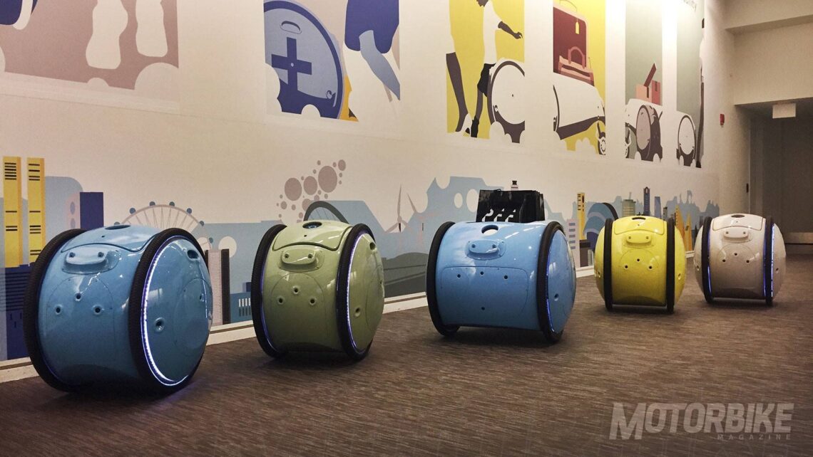 En primer lugar, GITA es un vehículo autónomo inteligente creado para ayudar a personas. Puede transportar hasta 18 kg, observa y se comunica. Puede seguir a una persona alcanzando 35 km/h de velocidad y puede moverse con autonomía en una zona previamente mapeada. Es esférico y tiene una personalidad muy marcada gracias a su pulido.