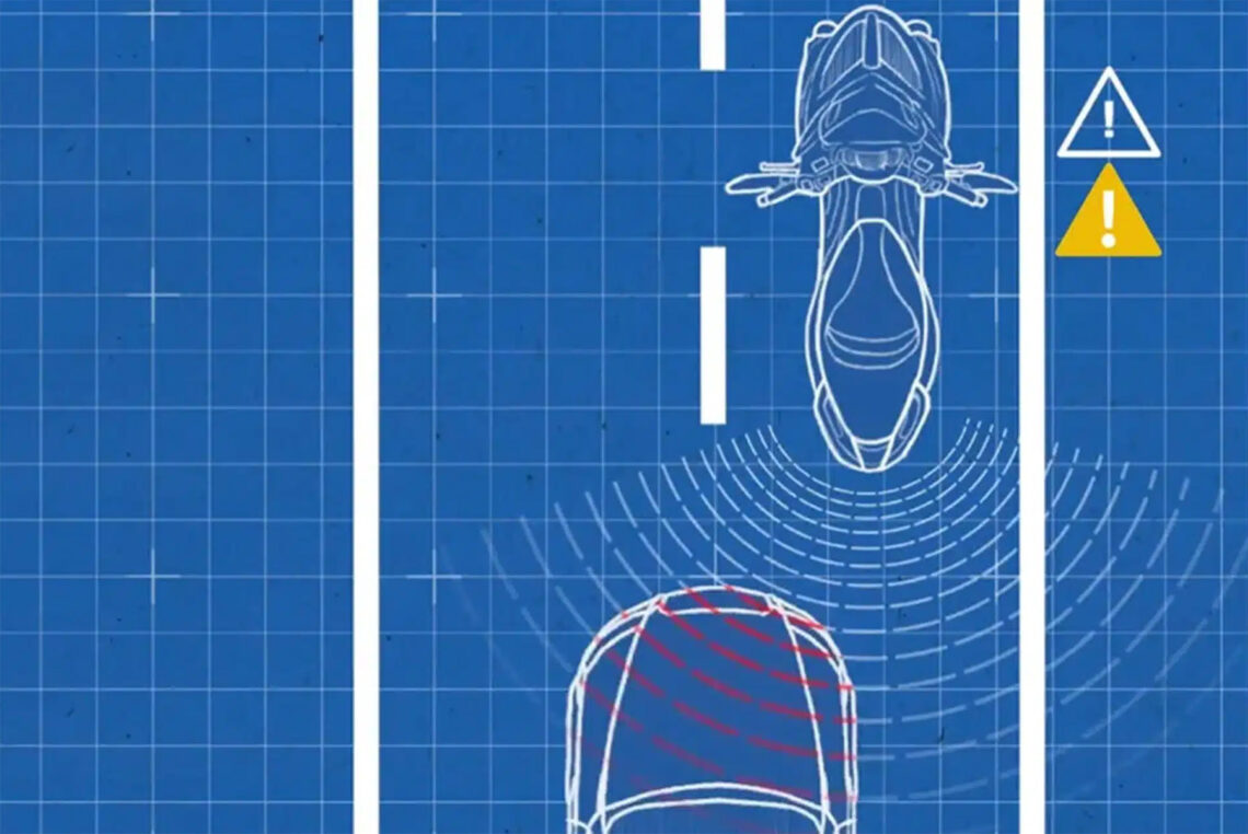 El sensor frontal predice colisiones con vehículos en su trayectoria, mientras que el sensor trasero predice colisiones cuando cambia de carril o si un vehículo está en su punto ciego o en un carril adyacente. El software traza un corredor muy específico por el que circula la motocicleta. Si los vehículos circulan por la periferia, no tomamos medida.»