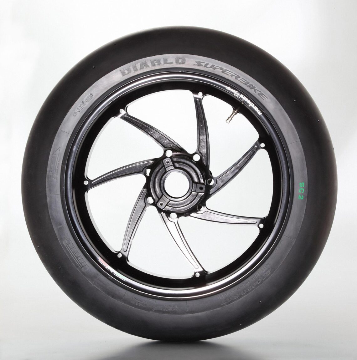 - SCX (extra blando): opción totalmente novedosa, y únicamente disponible en tamaño 200/65. Se trata de la gran novedad de Pirelli en esta nueva gama. Está enfocado para la nueva modalidad de WSBK de la carrera sprint a 10 vueltas, aunque también sirve como compuesto de calificación o neumático apto para finalizar una carrera parada por bandera roja.