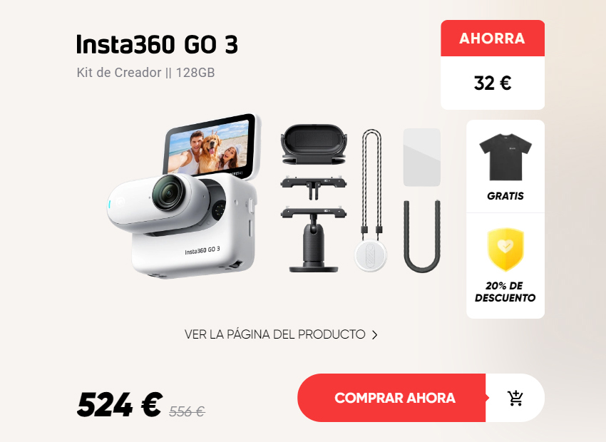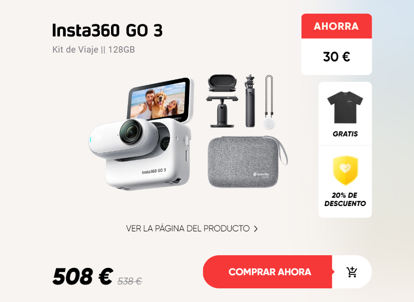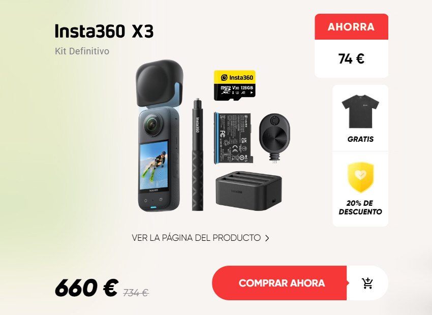 Estas ofertas, las cuales profundizaremos a continuación, están disponibles hasta el próximo 28 de diciembre. Margen suficiente para hacerte, o pedir, los regalos de Navidad o Reyes. Además, Insta360 te regala una camiseta y un 20% de descuento en la cobertura de daños accidentales a través de Insta360 Care. Los envíos son gratis en pedidos superiores a 139 €, garantizan la entrega antes del 24 de diciembre, la devolución debe realizarse en 15 días y ofrecen una garantía de 3 años. Para más información, puedes consultar todos estos descuentos navideños en la web de Insta360.