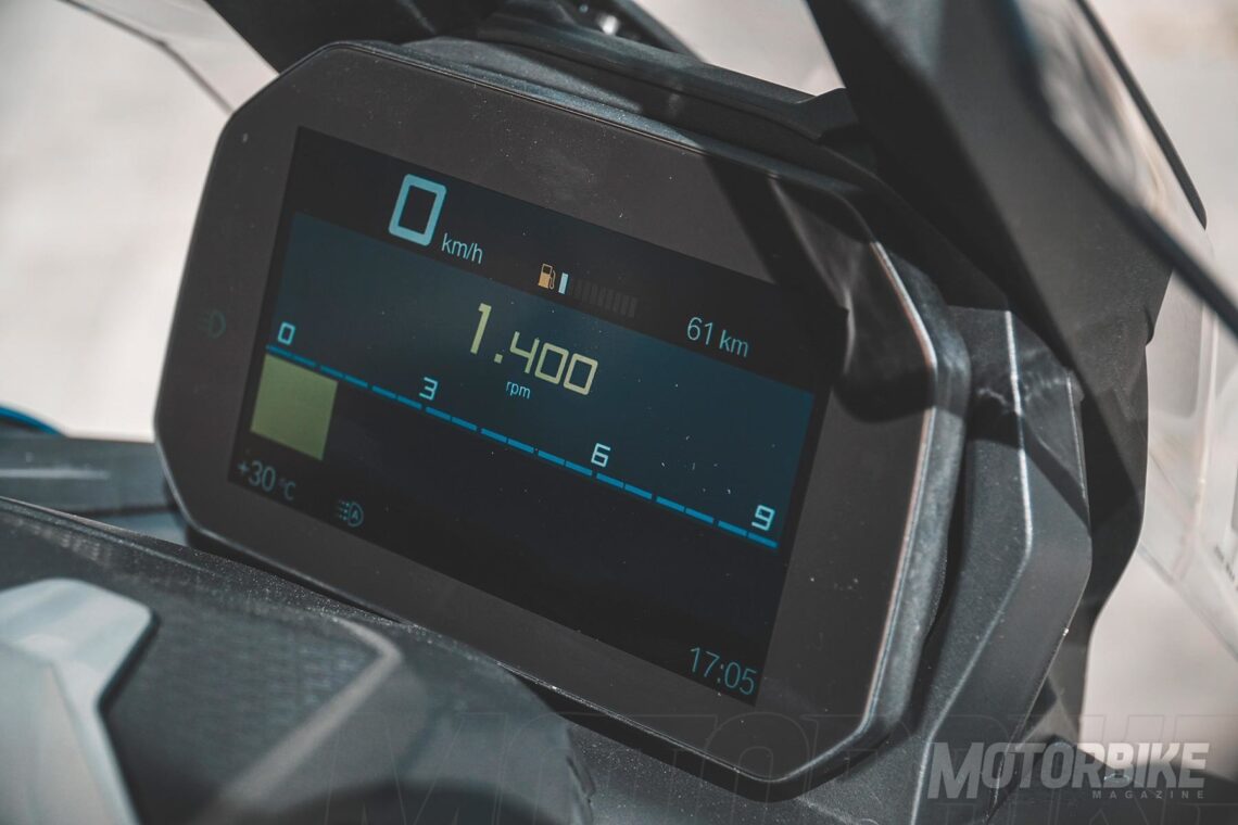 Lo que sí nos ha encantado es su pantalla TFT a color de 6,5". El sistema Connected Ride es la funcionalidad de conectividad y nos permite conectar nuestro teléfono móvil inteligente con el scooter mediante una app. Navegando por la pantalla con la típica rueda del puño izquierdo accedemos diferentes menús del teléfono o de música. También podemos hacer uso del navegador que nos indica con flechas la dirección de nuestro destino. También podemos personalizar la cantidad de información mostrada en pantalla o incluso una opción con las revoluciones del motor que nos ha gustado mucho. El Connected Ride forma parte del equipamiento opcional, por lo que al precio del BMW C 400 X hay que sumarle 656 €. ¿Merece la pena? En nuestra opinión, cuando estamos hablando de un scooter de este nivel, creemos que a su usuario no le supone un gran desembolso para tener una funcionalidad muy atractiva y cada vez más valorada por el usuario.