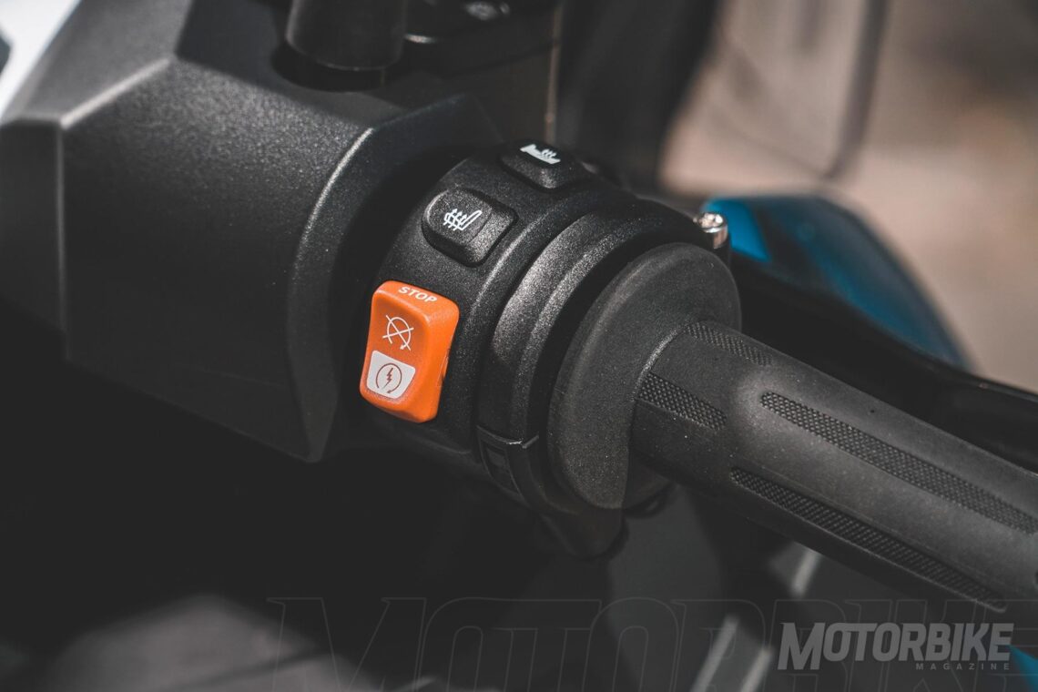 En el apartado electrónico, además del ABS, hay que hablar del control de tracción ASC y una toma de corriente de 12 V. Como hemos mencionado previamente, nuestra unidad cuenta con algunos extras opcionales como el paquete Confort (puños y asiento calefactables), las luces LED con luz diurna y, por supuesto, el sistema de conectividad Connected Ride con la pantalla TFT navegable mediante la rueda insertada en el puño izquierdo, común en los modelos BMW con estas funcionalidades.