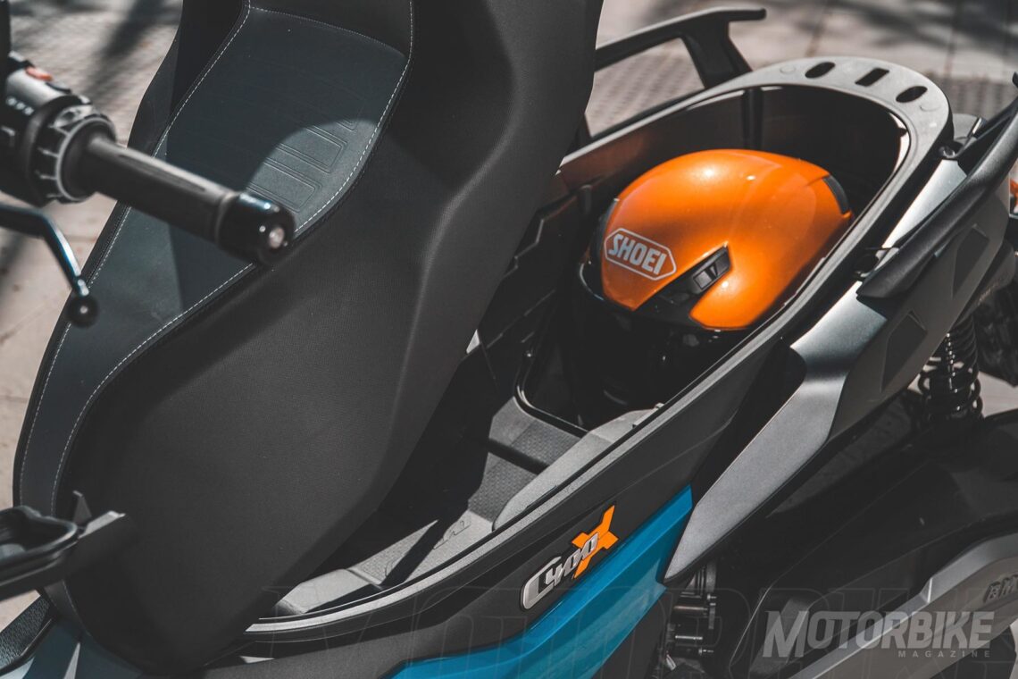 Una de las características que la marca quiere destacar más del BMW C 400 X es el denominado Flexcase, un hueco bajo el asiento extensible sólo en parado en el que guardar un casco integral. A éste se suman espacios en sendas guanteras en la parte del escudo.