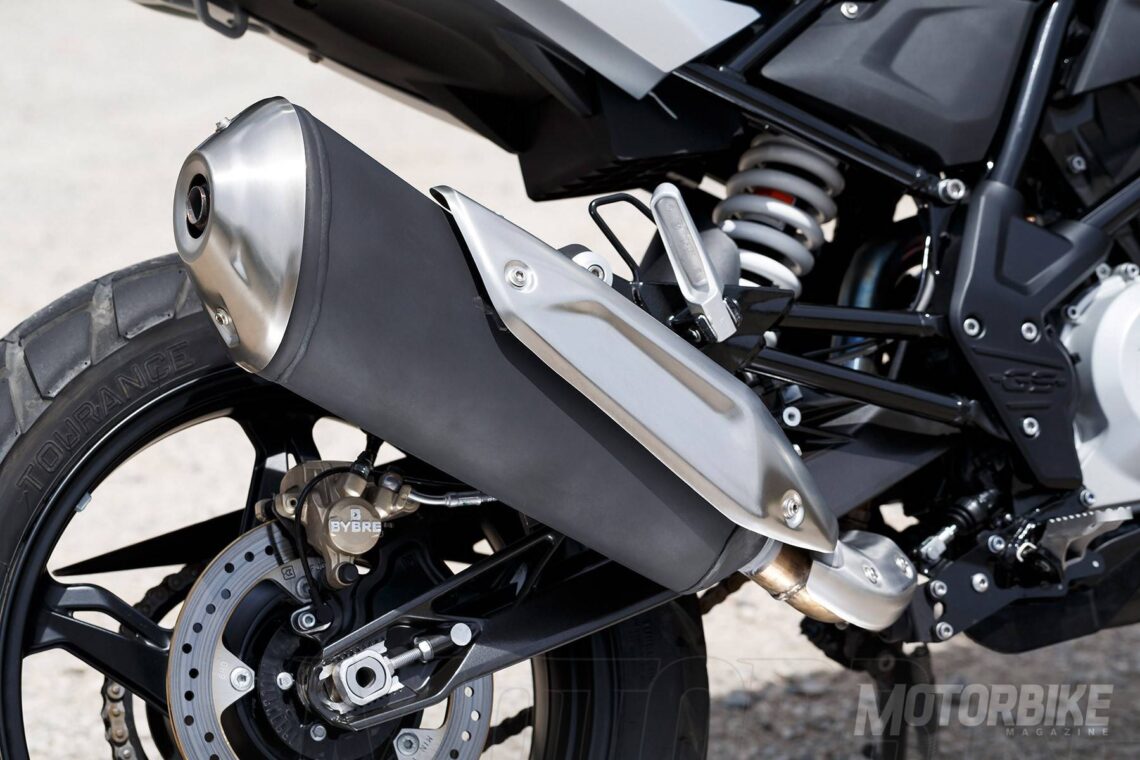 Otro aspecto que creo que habría que mejorar en la G 310 GS es su sonido. Al ralentí cualquiera podría decir que estamos sobre una moto de 125 cc, pero cuando acelaramos tampoco sale por su escape un sonido especialmente atractivo. Este detalle no es fácil de explicar, pero seguro que estarás de acuerdo conmigo en cuanto la escuches en marcha. Un silencioso que ofreciese un sonido motor algo más bronco –que no más alto– sería una mejora interesante que haría que esta moto fuese aún más impresionante de lo que ya es.