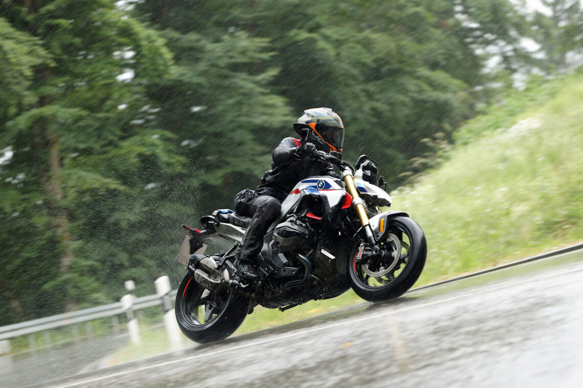 Siguiendo la tradición BMW, el paquete electrónico es amplio, completo y ajustable al milímetro. IMU de seis ejes, modos de conducción bien diferenciados, ayudas que actúan sin protagonismo pero con firmeza. Se nota la presencia de una plataforma inercial bien trabajada, y no hay sobresaltos en ningún momento: todo actúa donde debe, y cuando debe. Además, como habéis podido ver, a la moto no le quedó otra que hacer gala de todas ellas debido la ingente cantidad de agua que estuvo cayendo durante toda la prueba.