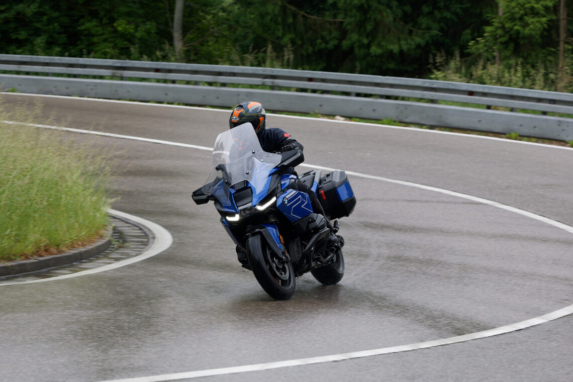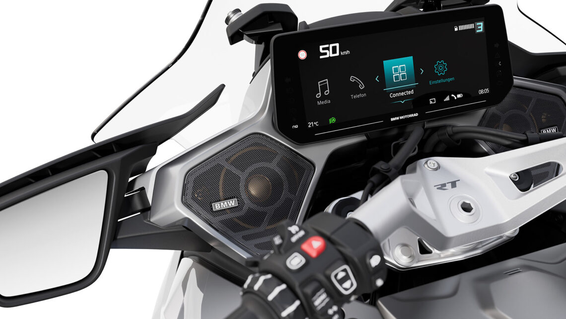 No puedo dejarme en el tintero la gestión del radar, sobre todo con el sistema de frenado, el ABS Pro y sus asistencia. La asistencia en frenada mediante el rastreo por radsr de elementos y vehículos próximos no es algo nuevo, la Yamaha Tracer 9GT+ ya lo incorporó hace años, pero solo de manera pasiva. BMW ha incluido, con mucho tacto y finura, una opción más activa, más presente, que no llega a frenar por ti pero, sí te da dos rápidos avisos en la maneta de freno delantero. Nada que pueda suponer un riesgo, pero si lo justo para avisarte y tener éxito en ello, para tu ya aplicar frenos. Y luego, evidentemente, una vez ya has aplicado frenos, la RT asiste en caso de considerarlo.