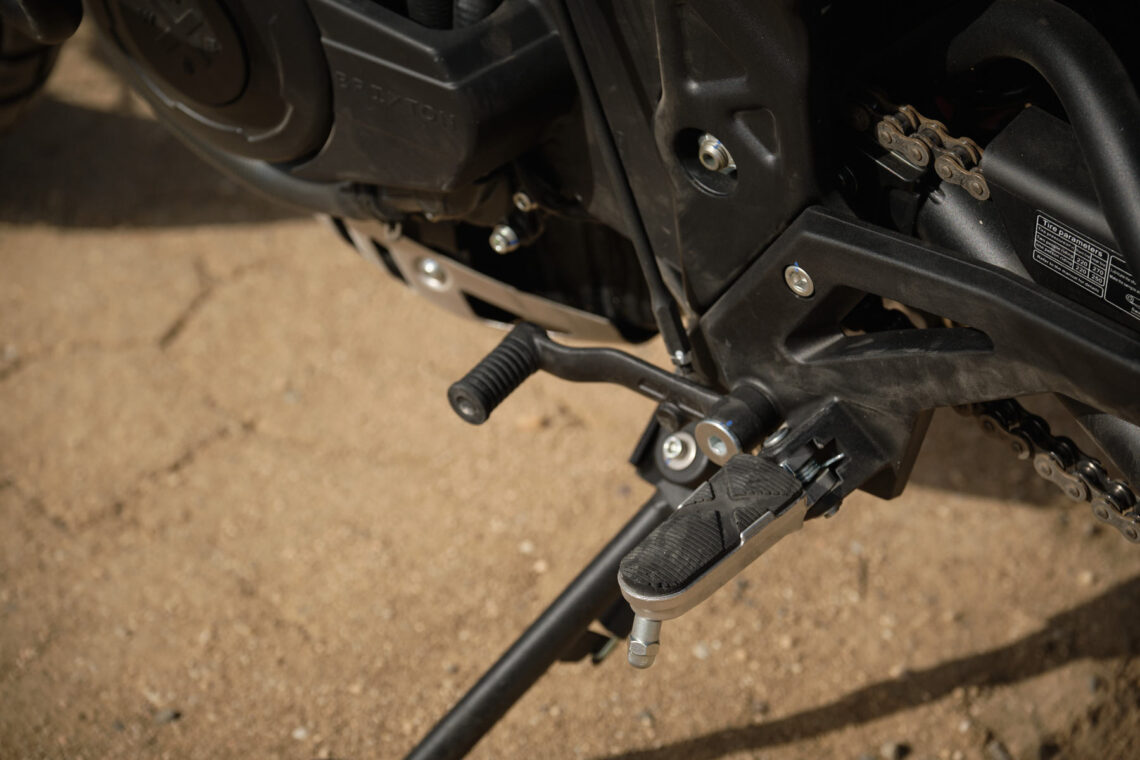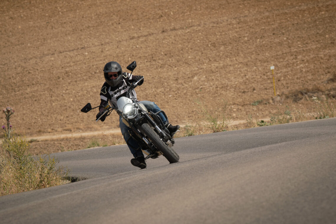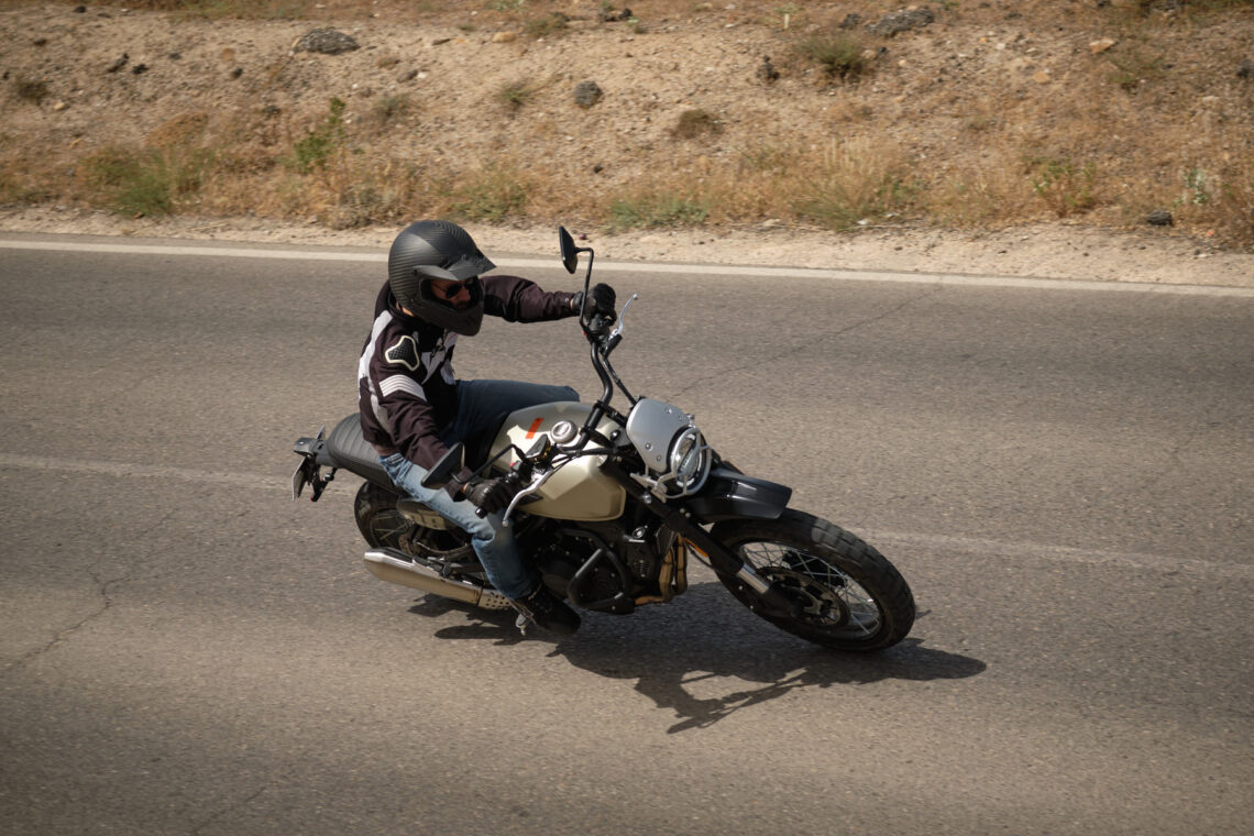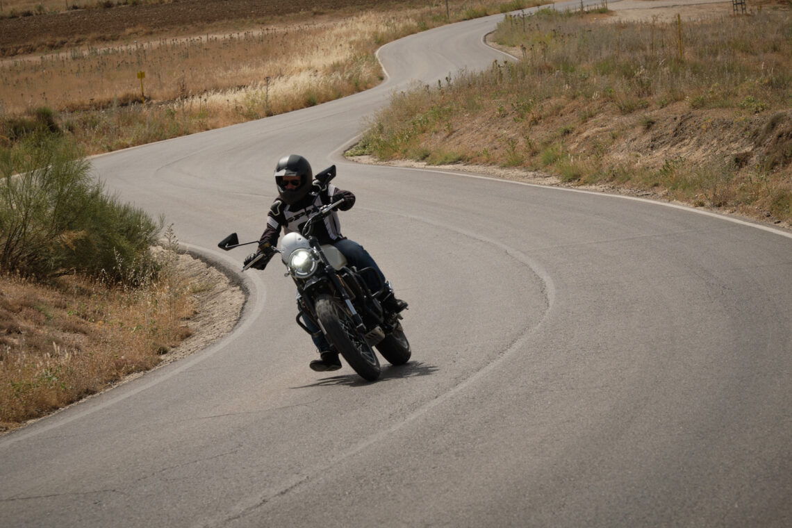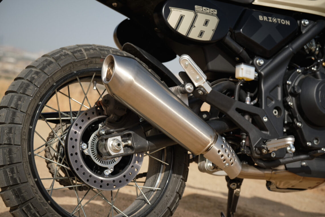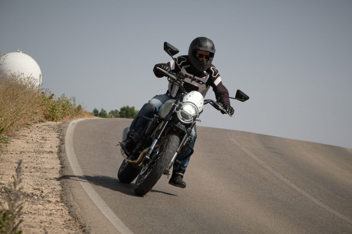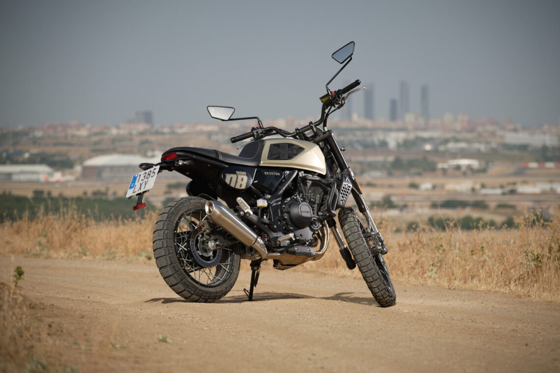 El chasis es rígido, antes percibes la deriva del neumático que la flexión del mismo. No es algo fácil de percibir en motos de esta potencia, pero el mercado está lleno de motos poco potentes con chasis muy malos. Este no es el caso, el tubular de Brixton se mantiene sólido ante cualquier cambio repentino de la marcha, frenada o aceleración, así como su flexión en puntos donde vamos muy inclinados por asfalto. Las cosas como son, me ha gustado mucho, porque además no es nada pesado, un binomio difícil de lograr.