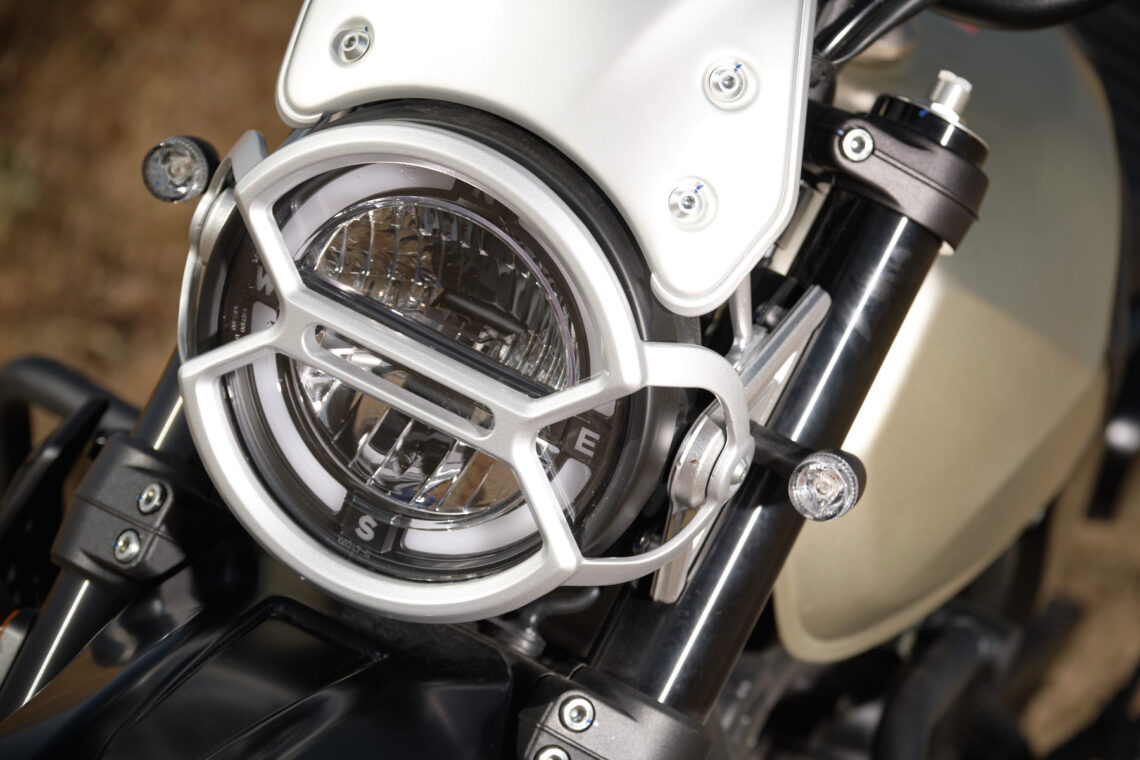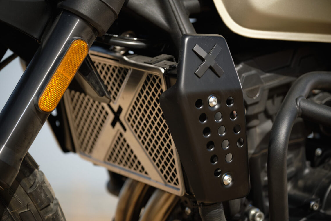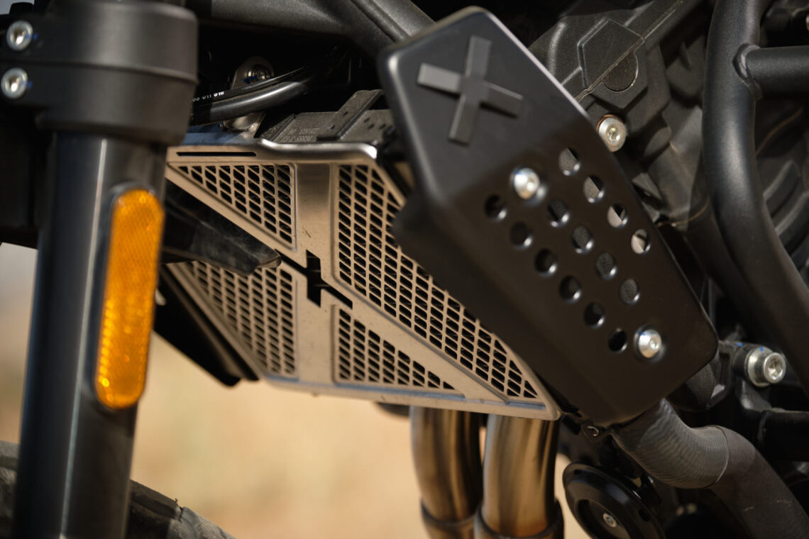 A ello se suman las protecciones laterales, el cubre cárter metálico, una rejilla de protección para la óptica delantera y una ergonomía más elevada en la posición de mandos para uso off-road.