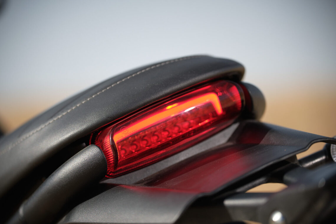 La parte ciclo ofrece un único freno delantero de 320 mm mordido por una pinza de 4 pistones y anclaje radial y un trasero de 240 mm y pinza de dos pistones. Por supuesto ambos cuentan con sistema ABS. Las suspensiones son la gran diferencia, con un tren delantero invertido de 150 mm de recorrido, regulable en hidráulico parcial, y un tren trasero de 130 mm también regulable, ambas firmadas por KYB.