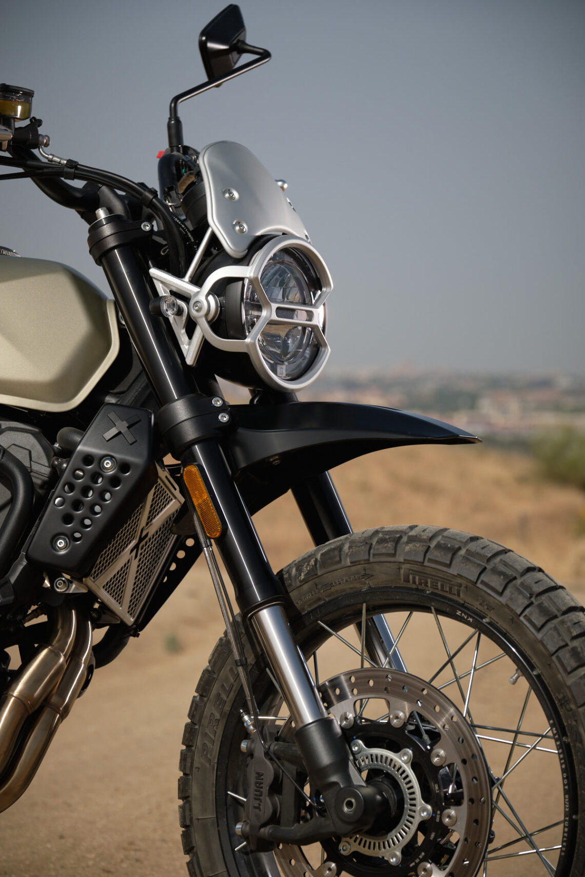 De hecho, un detalle que quizá diferencia en mayor medida esta Brixton Crossfire 500 XC de sus hermanas es ese aura a moto de enduro de hace 50 años, ese "Arizona challenge" que destila, y que la convierte en un producto más retro que "neo-retro" como si ofrecen sus hermanas menos camperas, y por tanto, más urbanas.