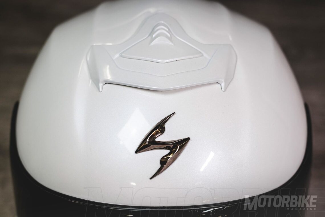El Scorpion EXO-R1 Air ha sido uno de mis cascos de prueba desde que ha comenzado el año, y lo cierto es que se ha convertido en mi casco del día a día. Estamos ante un casco muy deportivo, con un diseño muy aerodinámico, con un gran alerón trasero y una calota que comienza bastante estrecha, se ensancha en la parte central, y en la parte posterior (donde el spoiler) vuelve a hacerse más estrecha.