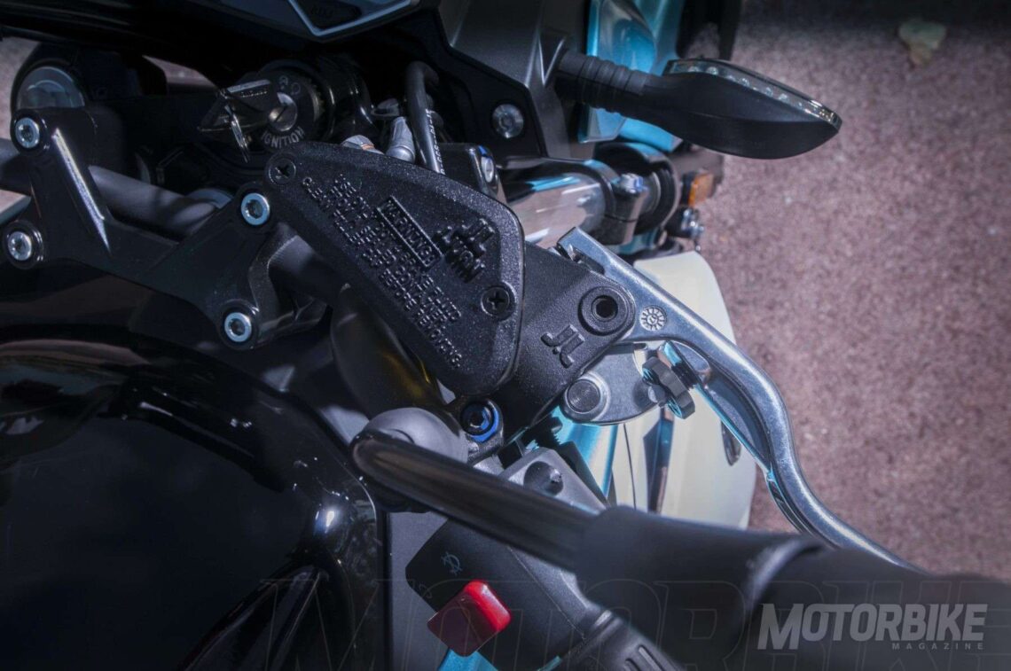 También confía en otros nombres de gran nivel. Un ejemplo es la empresa española JJuan con cuyos frenos se equipa la naked, concretamente dos discos delanteros de 300 mm y uno trasero de 240 mm, asistidos por un sistema ABS de Continental no desconectable, lo habitual en estas cilindradas. Además, impresiona el detalle del depósito del líquido de frenos totalmente transparente.