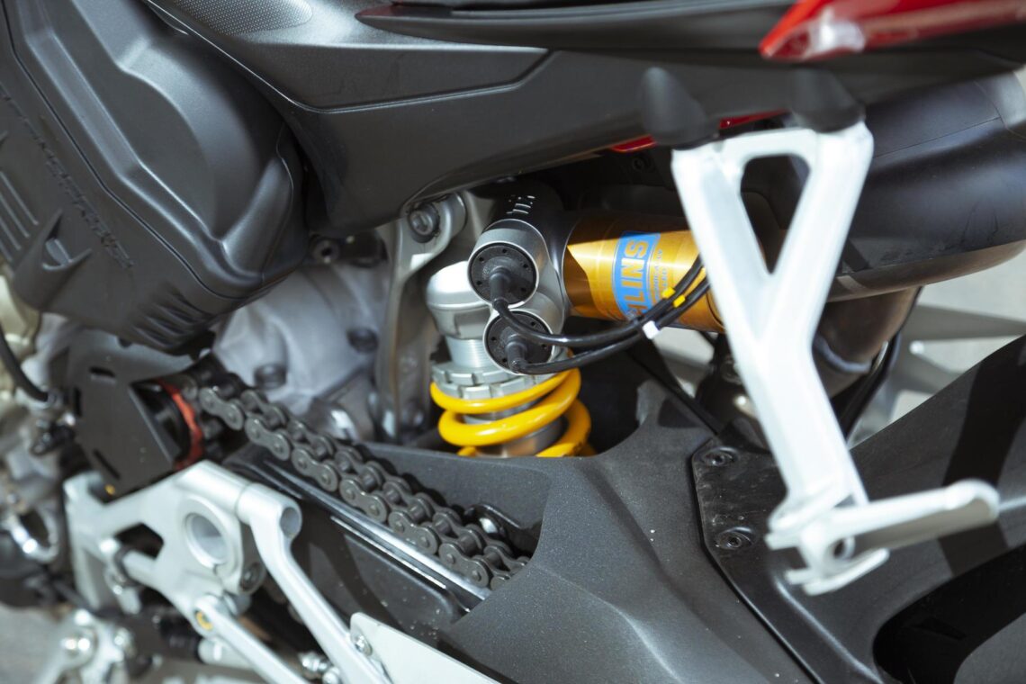 No obstante, todos los controles electrónicos son personalizables en cualquier modo de conducción, a diferencia de la gestión electrónica que realiza la centralita de las suspensiones Öhlins, que adecuan el tarado en función del modo de conducción. Cierto es que también se pueden configurar en modo manual y ajustar tanto la precarga como el hidráulico de manera manual.