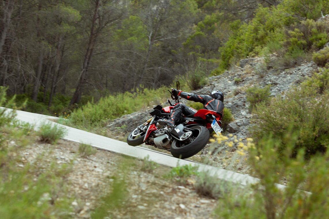 Dicho esto, debo señalar un pequeño punto negativo, y son los neumáticos de serie que trae. El Pirelli Rosso Corsa 2 es un grandísimo neumático, pero no es el adecuado para una bestia con 208 cv y 1.100 cc. Entiendo que Ducati se haya decantado por este modelo más versátil y menos exigente con las temperaturas, debido a las circunstancias de una moto naked, pero condiciona en cierto modo su potencial. Esta moto con un neumático más deportivo, tipo Pirelli SuperCorsa SP, debe ser lo más cercano a la perfección que he probado en carretera abierta.