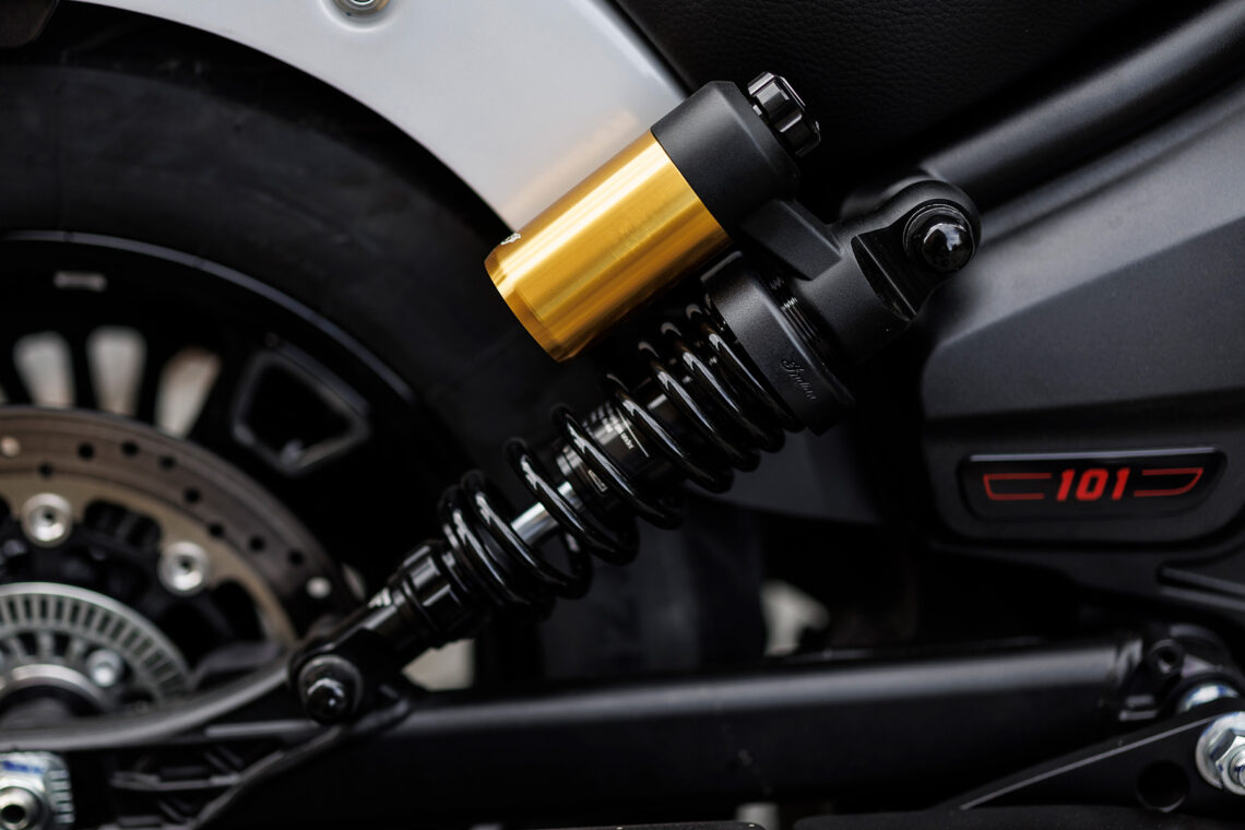 La 101 está enfocada y diseñada para ser la Scout más prestacional jamás antes vista. Los amortiguadores traseros regulables con botella exterior, la horquilla delantera invertida regulable o el doble disco de freno delantero Brembo son otros de los detalles diferenciadores de este modelo.