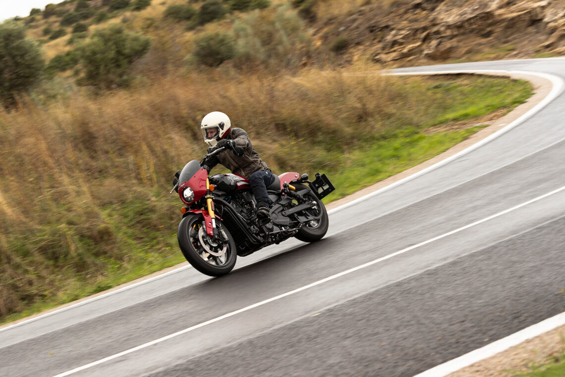 La Sport Scout es una Indian con toque deportivo, pero sin excesos. Esa podría ser mi mejor definición. Tienes una estética similar, salvando las distancias de los detallitos dorados en la horquilla por poner un ejemplo, o una pintura más sobria, pero la posición de conducción, la careta frontal, así como la conducción general, son muy similares.