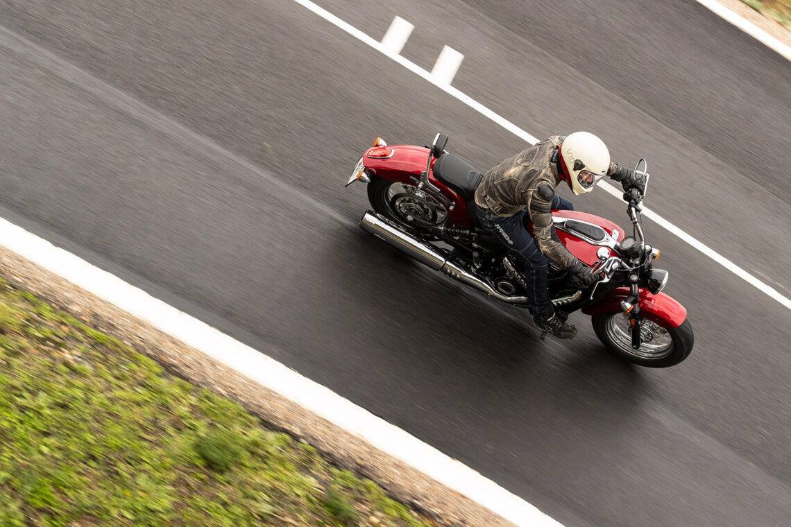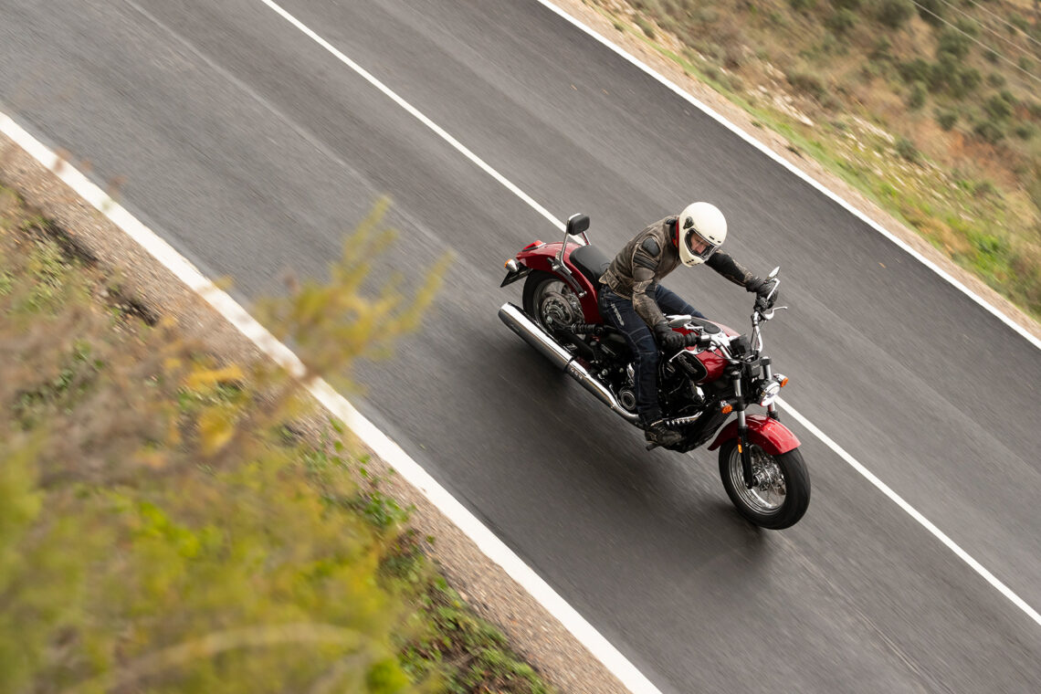El estilo bajo se debe gracias a su suspensión de 51 mm de recorridos, que se refuerza con el reposicionamiento de los retrovisores en los extremos del manillar.