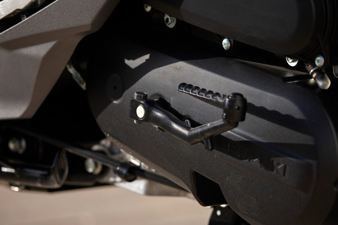 Nuestros tres protagonistas comparten parte ciclo y motor, es decir, chasis tubular, horquilla teléscópica y monoamortiguador trasero (lateral izdo.), impulsados por un motor Euro 5 de nueva generación denominado SEPα (Suzuki Eco Performance Alpha). Hablamos de un monocilíndrico SOHC refrigerado por aire con 8.7 CV a 6.750 rpm y 10 Nm a 5.500 rpm que vuelve a incluir pata de arranque de serie.