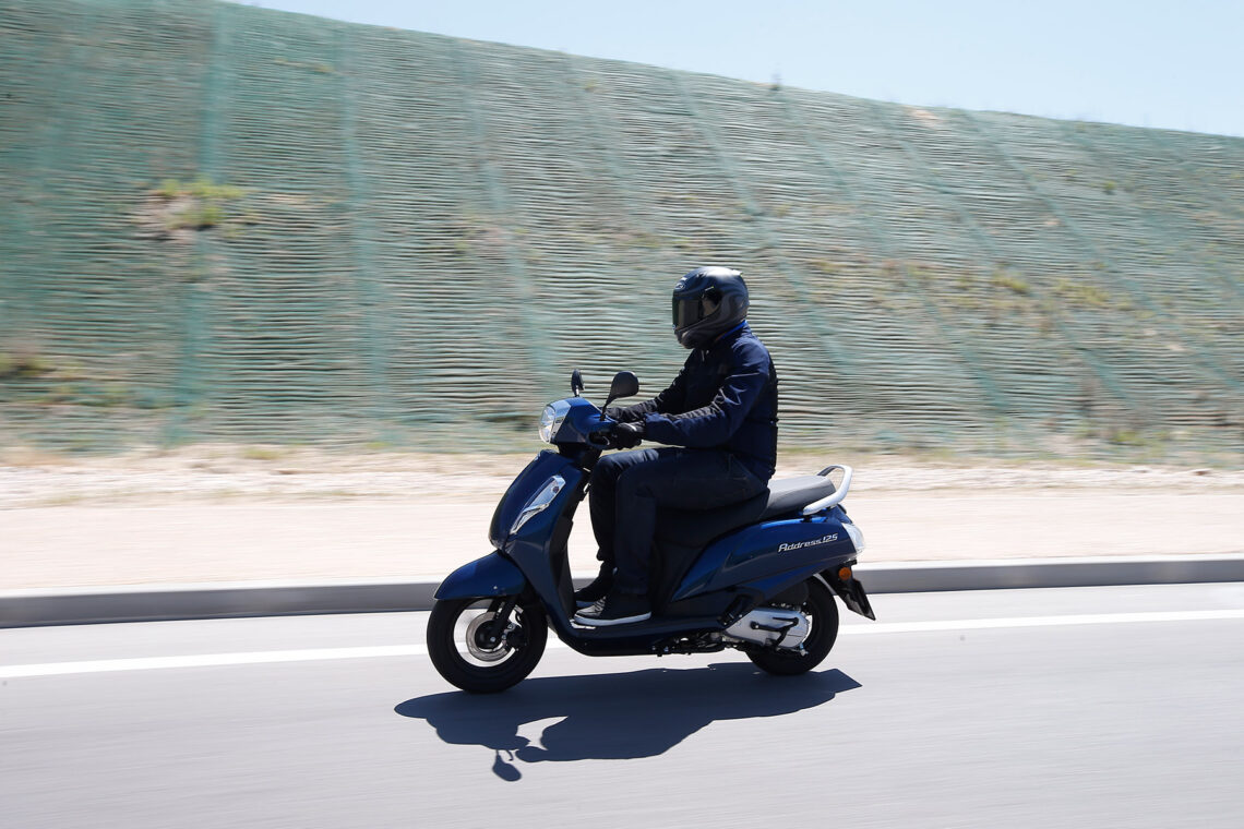 En unos motores tan ajustados como estos influye mucho el kilometraje realizado y, las diferentes unidades de pruebas que condujimos mostraban diferentes kilometrajes, mejorando mucho el rendimiento de las más rodadas. Aún así, el feeling es un denominador común: suavidad, linealidad y finura. Lógicamente, no hablamos de un motor en el límite de potencia de la categoría (15 CV), lo que nos brinda unas prestaciones comedidas en vía interurbana (sobre 80 km/h), pero con un consumo de auténtico mechero: durante la prueba no superó los 2 l./100 km, es decir, una autonomía de 250-300 km por depósito. En marcha, el Burgman 125EX fue el que más me gustó, por refinamiento, arranque (no te enteras que está arrancado hasta que te mueves) y sistema de parada a ralentí. En cualquier caso, las pruebas de Suzuki revelan que la aceleración 0-200 m de este trío de urbanos es superior a los Burgman 125 y Address 110 anteriores, signo inequívoco de su precisión y rendimiento.