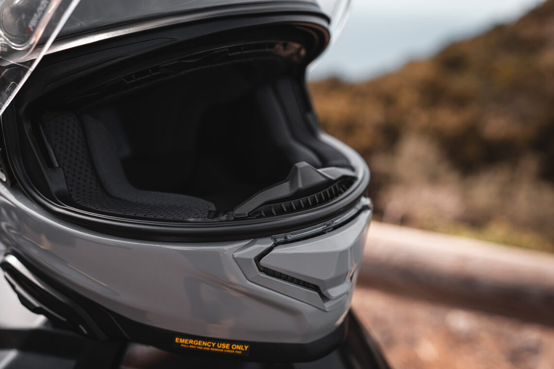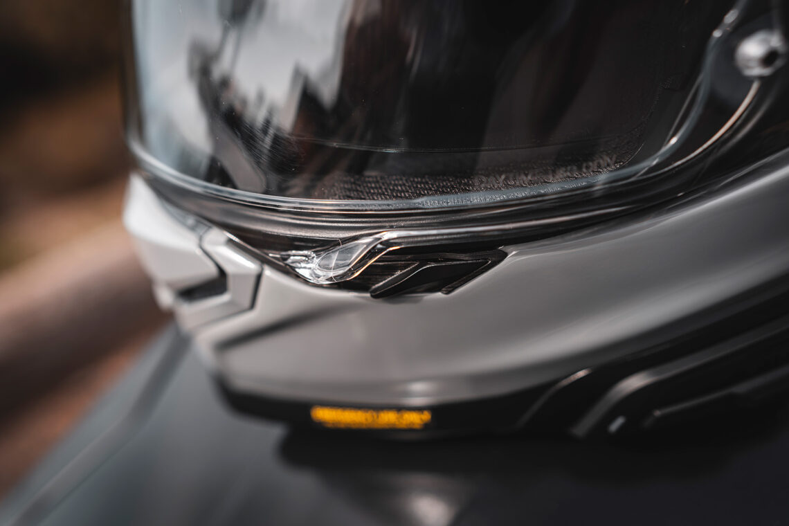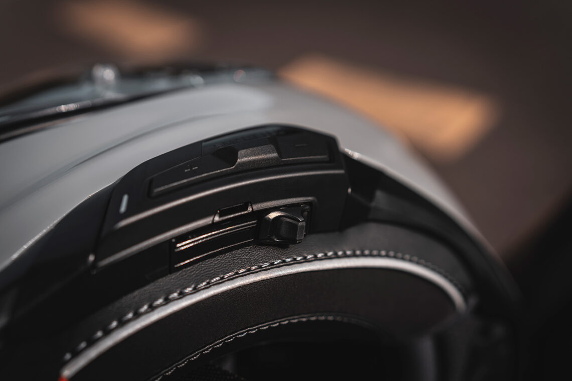 La pantalla del casco es otro aspecto que me ha impresionado gratamente. El nuevo cierre de seguridad y los anclajes sencillos hacen que la instalación y extracción de la pantalla sean tareas rápidas y fáciles, lo que es perfecto para cuando quiero cambiarla por una pantalla ahumada para adaptarme a diferentes condiciones de luz. También me llamó la atención la regulación del visor solar, con una pestaña para ajustarla en tres posiciones y configurarla a tu gusto. Se despliega desde el borde inferior izquierdo de la calota y se acciona fácilmente incluso en marcha.