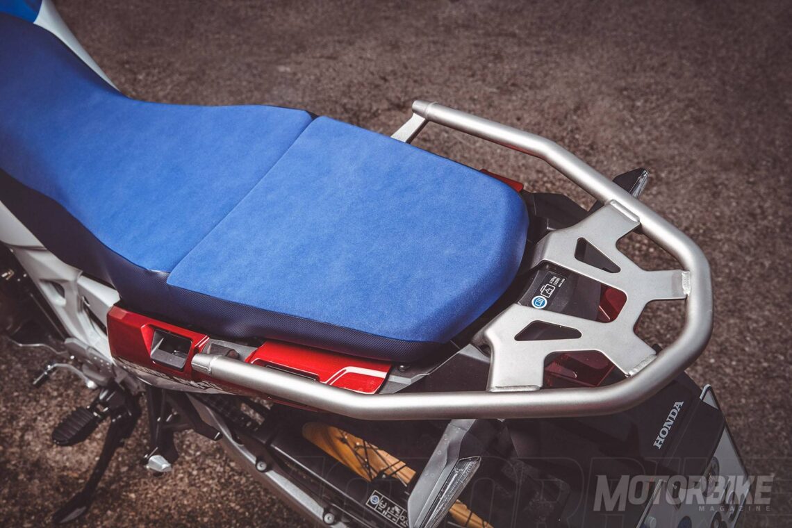 Mayor autonomía: Si pensamos en viajes en moto de largas distancias, una de las mejoras claras es el incremento de su autonomía, el cual se ha conseguido aumentando la capacidad de su depósito de gasolina hasta los 24,2 litros (5,4 l más que la básica). Según la marca del ala dorada, la Africa Twin Adventure Sports puede llegar a estar unos 520 km sin necesidad de repostar.- Suspensiones: Para conseguir ampliar sus posibilidades off-road, obviamente se han instalado unas suspensiones de mayor recorrido, con 22 mm más la horquilla (252 mm) y 20 más para el monoamortiguador trasero (240 mm). Esto también ha hecho que aumente ligeramente la distancia entre ejes unos 5 mm (1.580 mm).