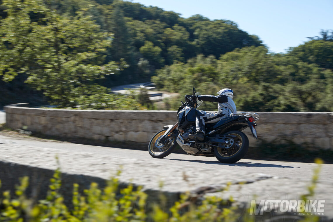 Entre curvas la moto se siente super firme y muy muy ágil, en especial montando una rueda delantera de 21’. Los neumáticos Bridgestone Adventurecross Tourer AX41T me dieron una seguridad excepcional en todo el recorrido, además claro está de la suspensión. Puedes ajustar la compresión y la extensión de manera independiente desde los menús, así como la precarga si viajas con pasajero y/o equipaje. En mi caso priorizo un setting a favor de la suavidad. Durante la prueba pasamos por carreteras con un aspecto que daba miedo, y la Africa se comportaba como un auténtico Scalextric con el imán "trucado". La confianza en el tren delantero incluso para aguantar las apuradas de frenada en plena inclinación era excepcional. Además, contar con el ABS en curva también te da un plus de seguridad importante.