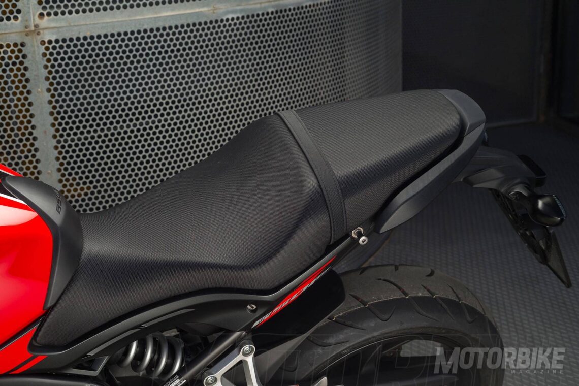 Pero es justo recordar que no estamos subidos en una moto superdeportiva. La Honda CB650F se mueve bien en la ciudad y también es muy divertida para salir por carretera. Por si fuera poco, sorprende su bajo consumo, lo que dispara su autonomía hasta los 350 km. Pero su concepción versátil hace que estemos ante un modelo de expectativas no tan sport.