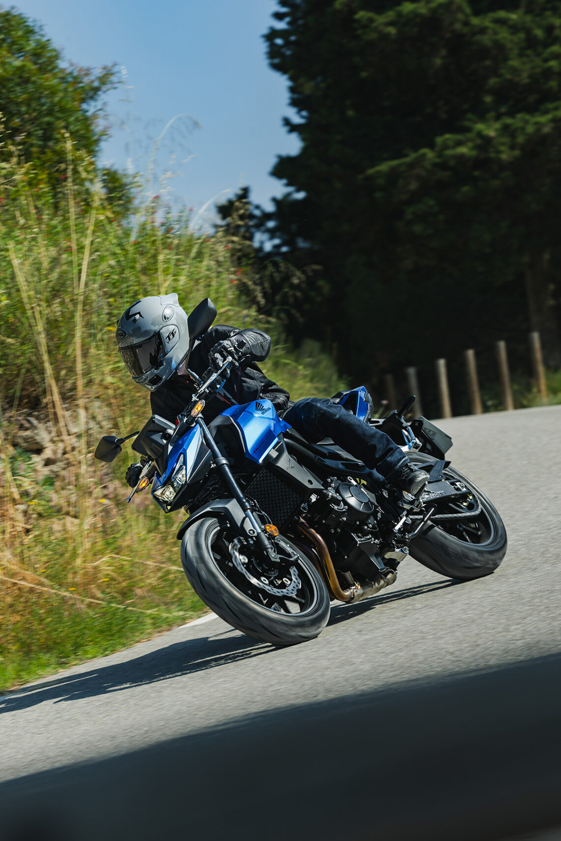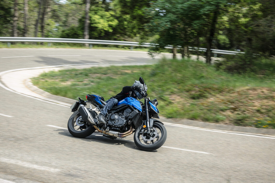En cuanto al amortiguador trasero, mejora pero no tanto. Cuando subes mucho el ritmo llega su némesis sigue condicionándolo: la temperatura. En frío y en uso normal se siente mejor que el modelo anterior, pero su aplicas una conducción muy fuerte o con mucho ritmo, sigue teniendo un poco de fatiga. Repito, es menos que el modelo anterior, y honestamente es la que tiene que tener para que en frío no resulte una tabla ni sea una moto difícil de mover... pero en apoyos muy fuertes o cambios de peso bruscos, sobre todo si el firme es irregular, es cuando notas que la trasera no está pensada para ir “a cuchillo” a toda costa.