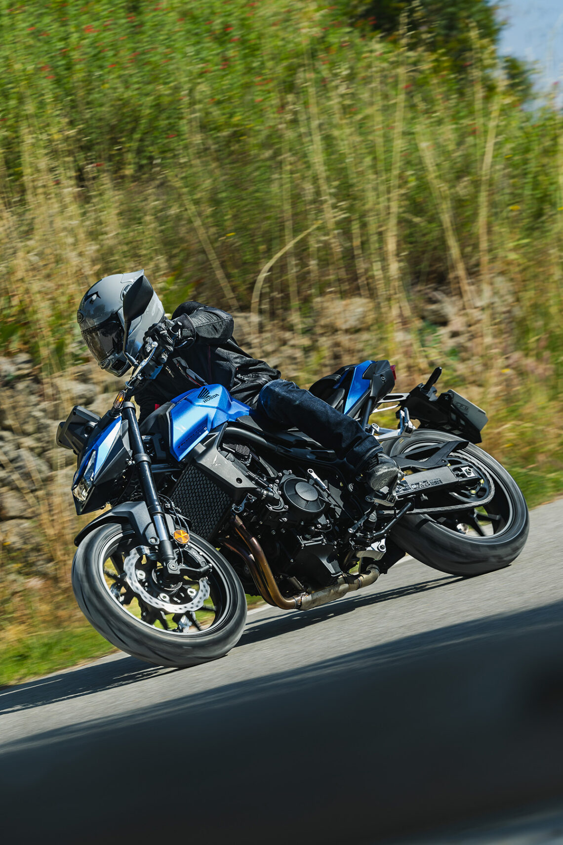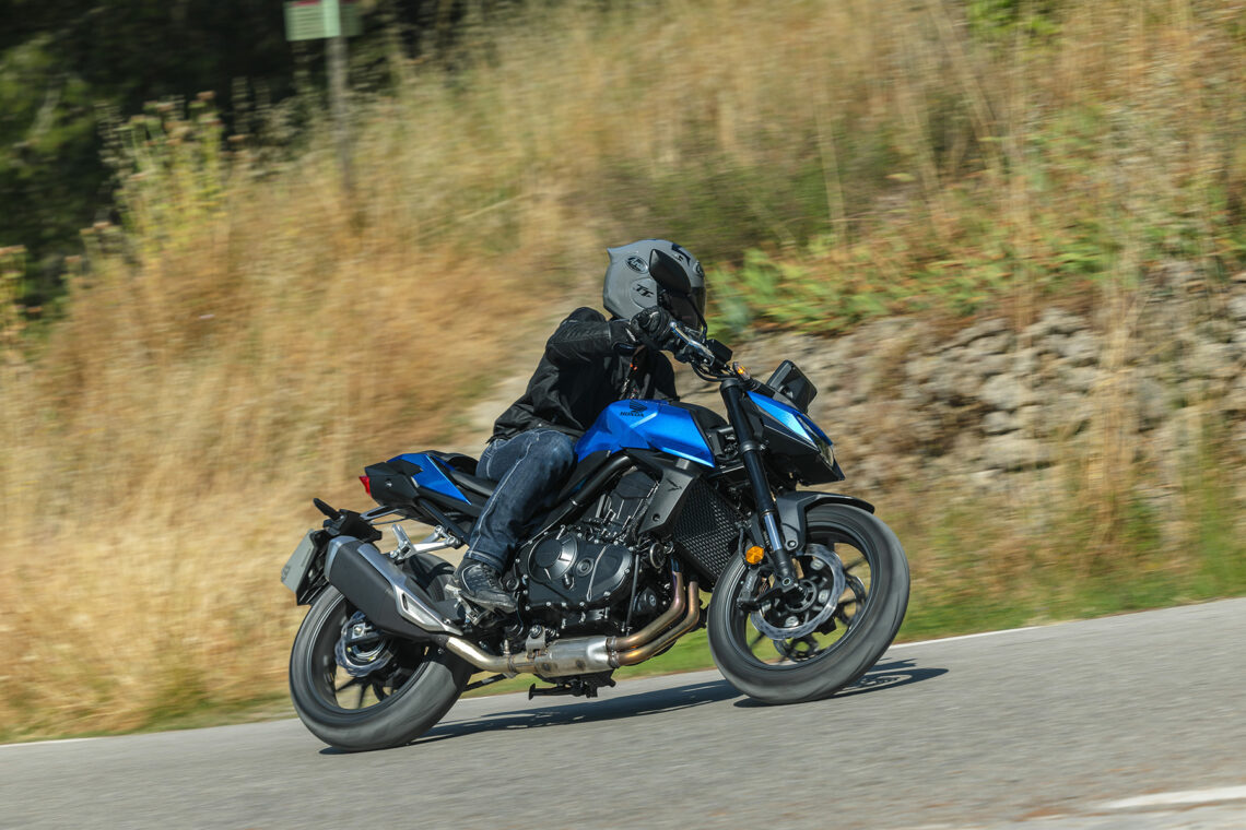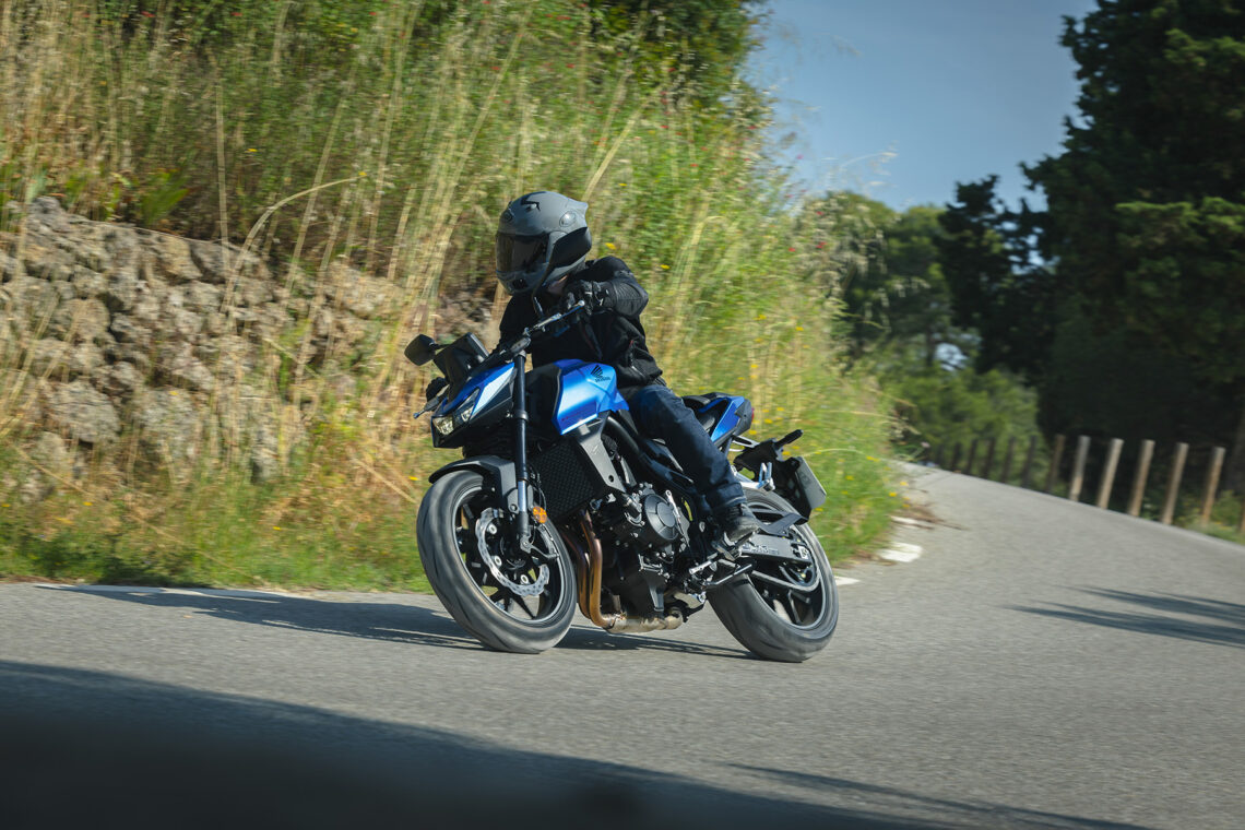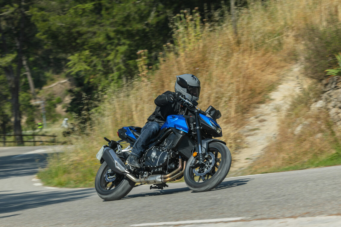 En el motor no me voy extender mucho pues no hay apenas diferencia. Se nota más suaves en las transiciones "on/off" y el cambio semi-automático ha ganado un puntito de finura, pero por lo demás el bicilíndrico en paralelo de la Hornet sigue siendo la misma mecánica cumplidora. Si lo conoces, no te va a sorprender. Si no lo conoces, te va a parecer suave, algo plano en la entrga hasta medio régimen, pero con buena zona alta. Esto último es lo que quizá a un servidor más me ha llamado la atención, ya que no es frecuente esta personalidad de la zona alta en los motores bicilíndricos. No es un motor explosivo, ni emocional, pero sí eficiente y suficientemente potente como para ir rápido sin tener que buscarle demasiado las cosquillas, y en la zona alta no muere.
