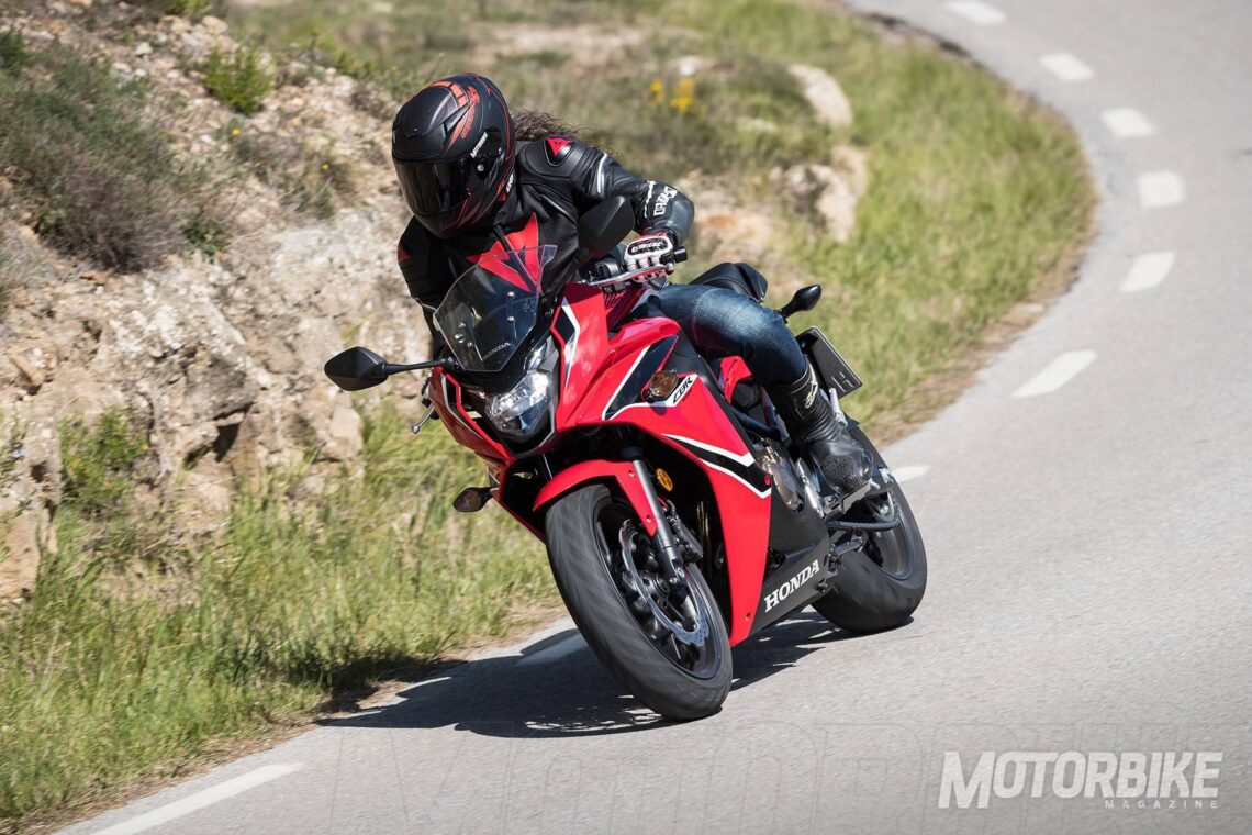 Al encender el motor y subir de vueltas, el rugido es maravilloso, pero dinámicamente sorprende su gran suavidad con la que poco a poco puedes llegar a altas velocidades. Para sacar el jugo a su tetracilíndrico, es verdad que tendrás que llegar a 11.000 rpm para llegar a su potencia máxima, lo que te obliga a realizar más cambios de marcha sobre todo en carreteras de curvas. Pero he ahí precisamente uno de sus puntos más divertidos. Además, en esta CBR 2017 se ha configurado una relación de marchas más corta para hacer más rápida esa aceleración entre la 2ª y la 5ª marcha. Te encantará hacerla rugir en ese régimen, un puro cuatro cilindros de los que ya no encuentras en este segmento. Además, su autonomía es de 350 km con el depósito lleno (17 litros). Por lo demás, los cambios de dirección son bastante rápidos y directos para una moto de estas características.
