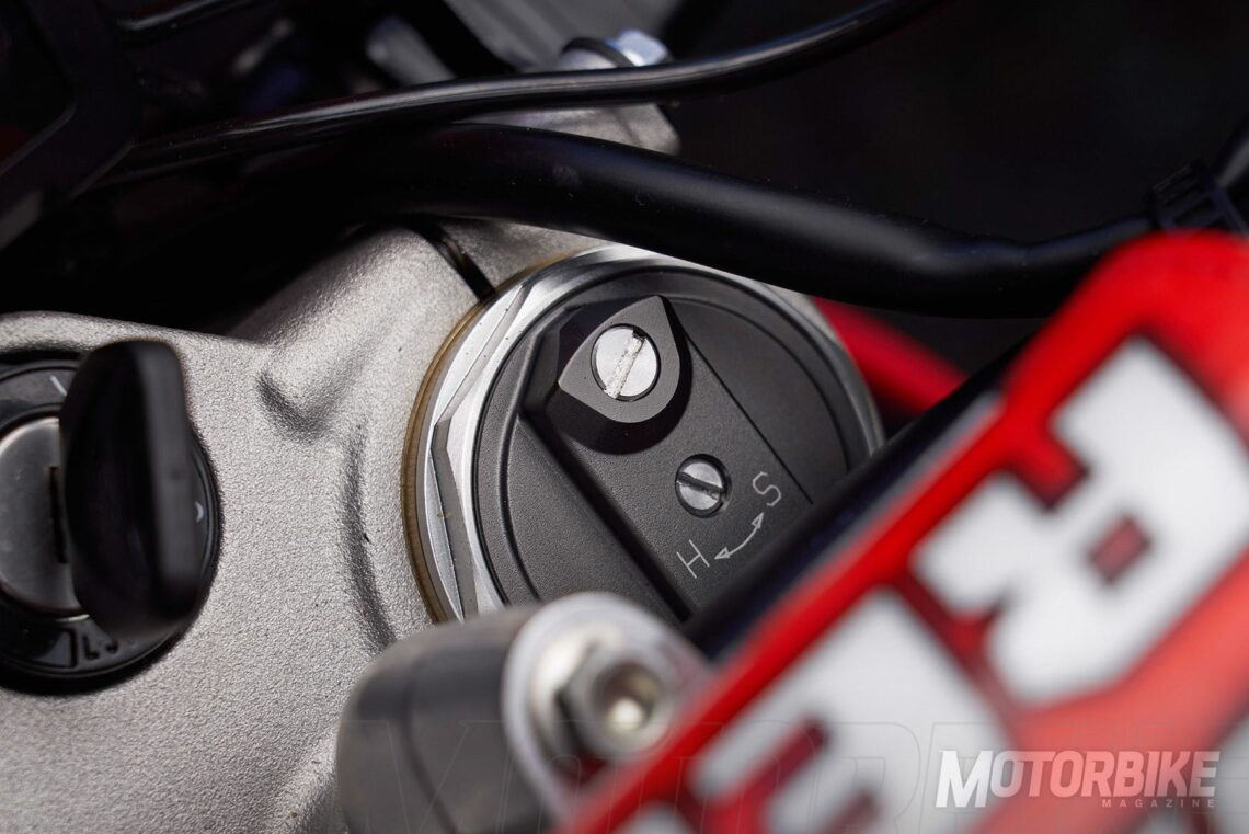 Algo parecido sucede a la hora de circular por carretera. Gracias a su sexta velocidad, no tienes sensación de estar forzando el motor y puedes llegar a las tres cifras en el marcador de velocidad rápidamente, pero a partir de los 110 km/h, la cosa se complica, y es entonces cuando aprecias esa limitación de motor de la que hablábamos. No tuve reparo en comentarlo con Tetsuya Takano (el ingeniero japonés encargado del desarrollo del motor) en el mismo descanso que quise ajustar la altura de las manetas, el cual me habló de la posibilidad de rectificar la potencia del motor electrónicamente, para un uso exclusivo en circuito.