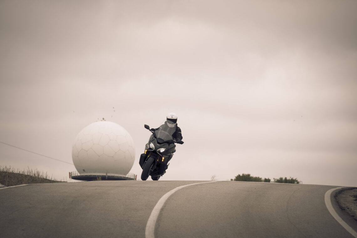 Una vez dejamos las rectas atrás y encaramos la curvas, como decía, encontramos otra moto, capaz de manejarse como pez en el agua, mucho más ágil de lo que encontramos en ciudad y con una estabilidad propia de moto deportiva. La principal diferencia es que vamos con "solo" 57 cv, pero el cambio, el reprís y el par motor cubren de sobra las necesidades dinámicas y prestacionales, propulsando al Forza hacia delante con mucha celeridad. Otro aspecto que sorprende son los frenos, incluso ante una frenada fuerte y prolongada, donde requieres mordida estable, ahí estarán, sin desfallecer ni perder tacto en la maneta delantera, algo que suele fatigarse si abusas de ello en una moto convencional.
