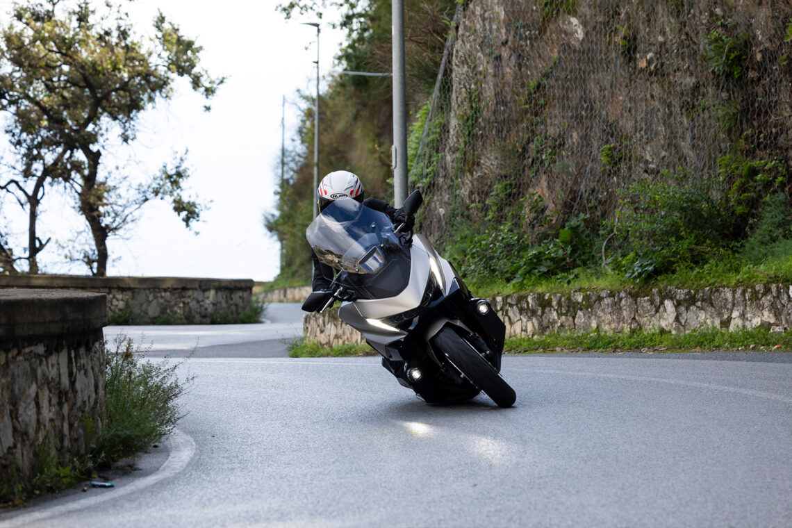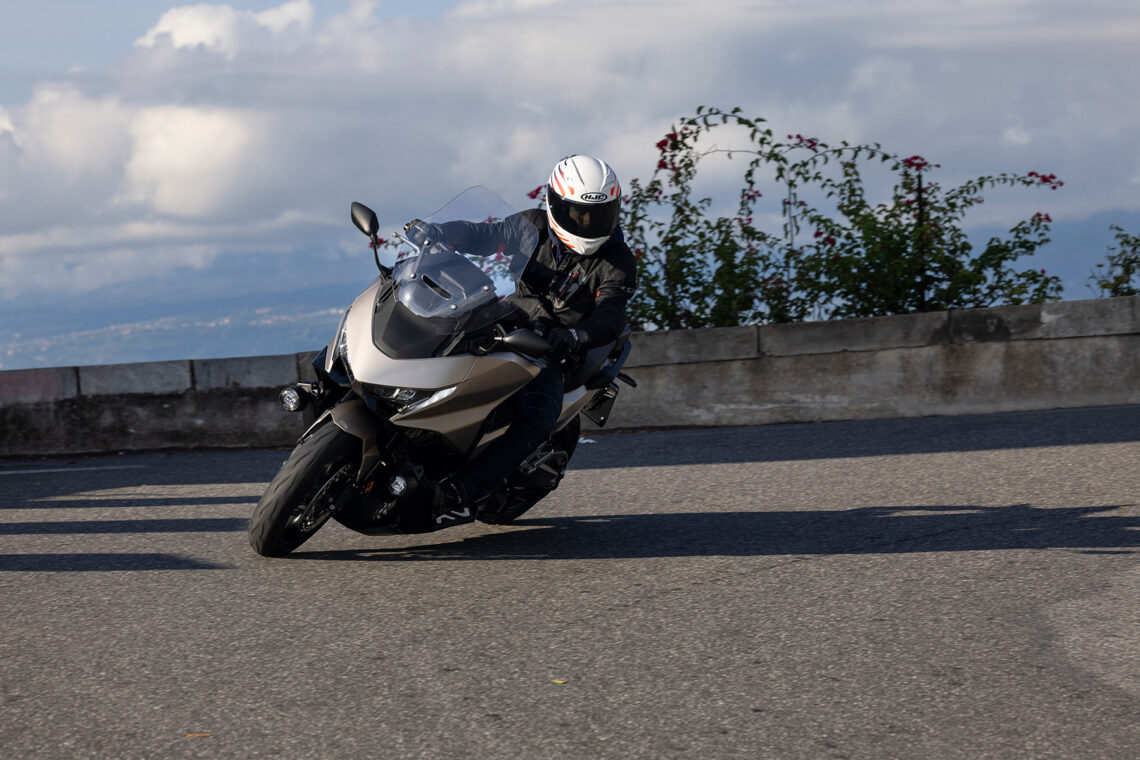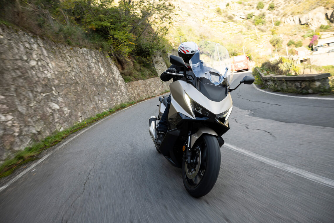 En cierto modo tengo que reconocer que el Forza 750 me recuerda mucho al X-ADV .. hasta que llegamos a este punto, donde son totalmente diferentes. Mientras el X-ADV es más alto, más nervioso, más ágil aunque cueste creerlo, y con una mayor facilidad para los cambios de dirección, el Forza 750 es más estable, más firme, más sólido y, evidentemente más deportivo aunque suene contradictorio. Esto significa con reacciones y tacto más directas/directo. Además te permite apurar más y realizar más correcciones.