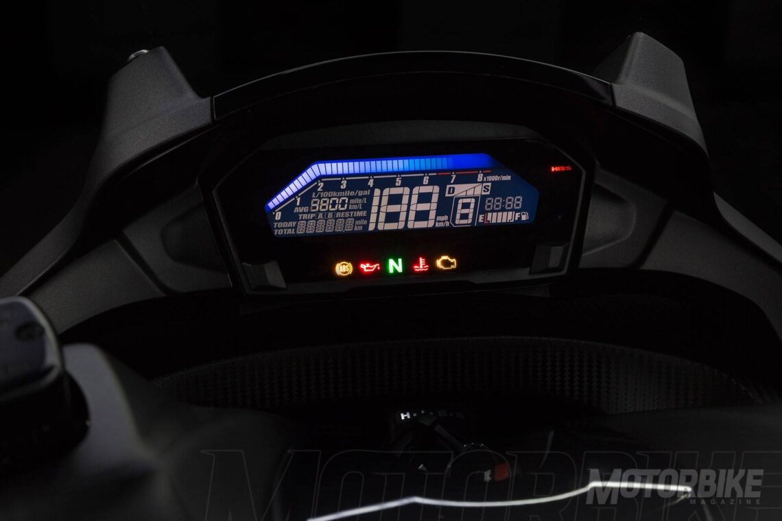 Es 100% digital como el anterior, pero cambio de diseño para ser ahora más llamativo y hereda de al Honda NM4 Vultus la posibilidad de cambiar su color e incluso permite introducir un pequeño texto personalizable.