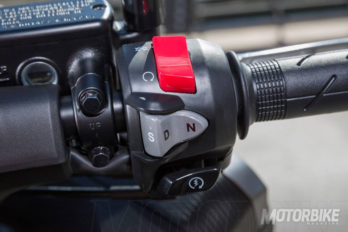 Más allá de estas anecdóticas posibilidades de personalización, lo que más me llamó la atención es que el cuadro de manos del nuevo Honda Integra 750 es que también cambia de color en función del tipo de conducción que estemos realizando; es decir, en conducción económica se mostrará de color verde e irá cambiando de tonalidad hasta mostrar el color rojo cuando le exijamos las mayores prestaciones.