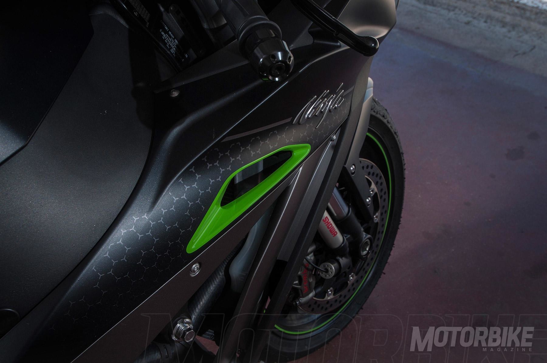 Lo primero entonces es el aspecto. Evidentemente es una Kawasaki, de eso no hay duda, no porque mantenga el diseño de otras ZX-10, sino porque las líneas recuerdan a otros diseños de la marca, y por supuesto, el color verde. Si hay una marca con adeptos a su color corporativo, ésa es Kawasaki –hay quien no se compra una ‘Kawa’ si no es verde–. El diseño es algo subjetivo, pero en mi caso ha sido amor a primera vista. El acabado en negro mate gana muchos enteros en las distancias cortas, y los detalles en verde ocupan lo justo para darles un toque picante sin verse afectada la elegancia del acabado.