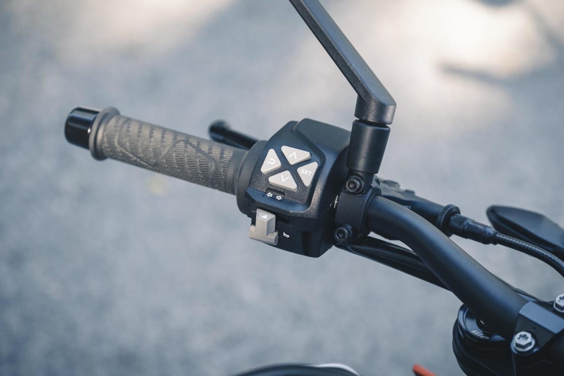La electrónica de la KTM 890 Duke R también se ha actualizado, con 3 modos de conducción, ABS en curva, control de tracción (desconectable) y control de deslizamiento MSR opcional. Una instrumentación completamente digital nos muestra además todo tipo e información entre la que encontramos la de marcha engranada, ya que la KTM 890 Duke R también incorpora cambio semi-automático de serie.