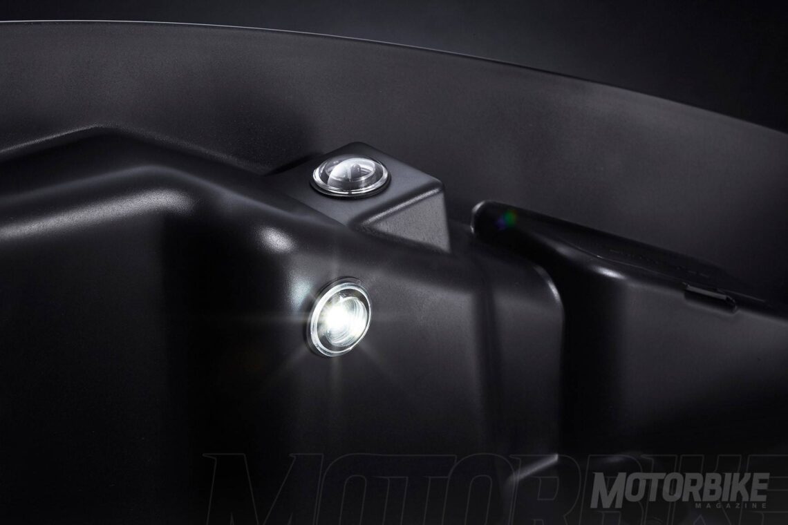 Uno de los aspectos que más se tienen en cuenta a la hora de decidirte por un modelo de scooter GT es la capacidad del cofre. En ambos modelos caben dos cascos integrales, a pesar de que el motor del 300 es de mayor tamaño. El cofre cuenta con luz LED, que se activa automáticamente gracias a un fotosensor, y para la iluminación exterior se ha optado por una doble óptica con bombillas de alto rendimiento y una doble luz de posición con 10 luces LED en cada uno de los lados. Detrás, el piloto es “full LED”, con una atractiva forma en X y con 26 luces de posición y freno.